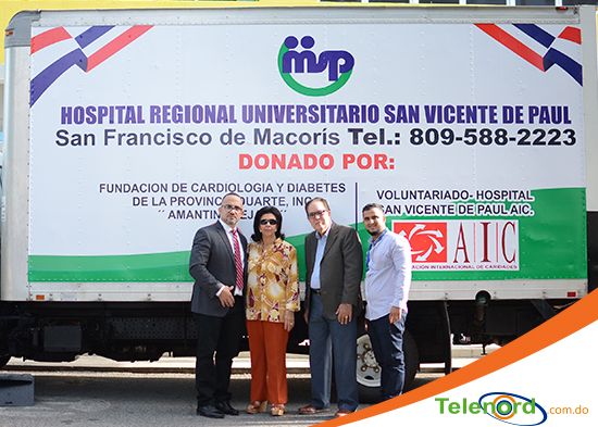 San Francisco De Macorís.- El Hospital Regional Universitario San Vicente de Paúl recibió en la mañana del martes 3 de noviembre, la donación de un camión, por parte de la Fundación de Cardiología y Diabetes de la Provincia Duarte Amantina Tejada y el voluntariado del hospital.