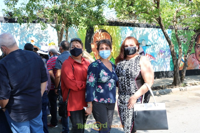 Entre las autoridades y familiares desvelizaron una pintura gigantesca y los letreros con el nombre de Félix Antonio Taveras Ortega.