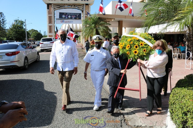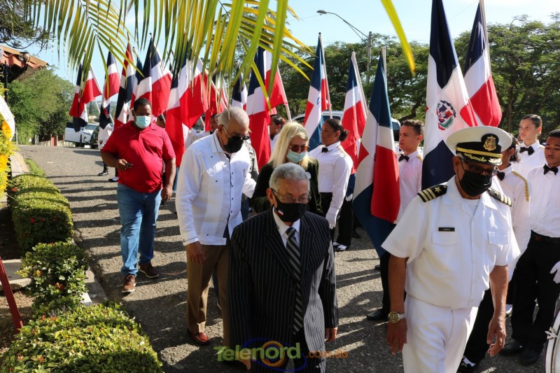 Los abanderados del Liceo Pedro Henriquez Ureña acompañaron la ofrenda floral al busto del coronel Juan María Lora Fernández, caído en combate en esa batalla.