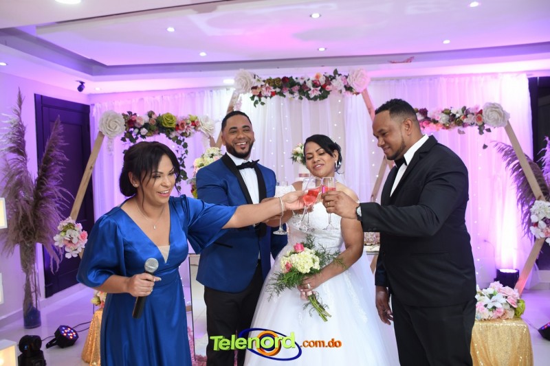 Luego del acto, los presentes y otros invitados, se reunieron para la fiesta de recepción en el salón de eventos Mayra, donde celebraron en un ambiente alegría y felicidad, el enlace matrimonial de la pareja.