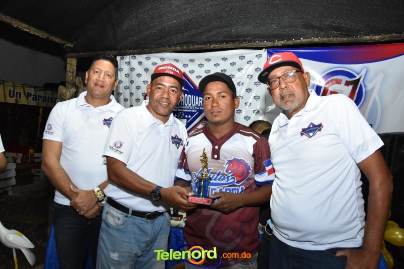 Los miembros del comité ejecutivo e invitados especiales entregaron el trofeo de campeones a los integrantes del equipo Juan Francisco Tavares encabezado por su dirigente Alvin Osorio, también a los subcampeones José Rafael Hernández encabezado por Leury Pérez.