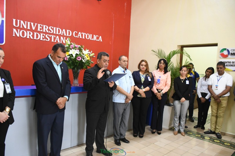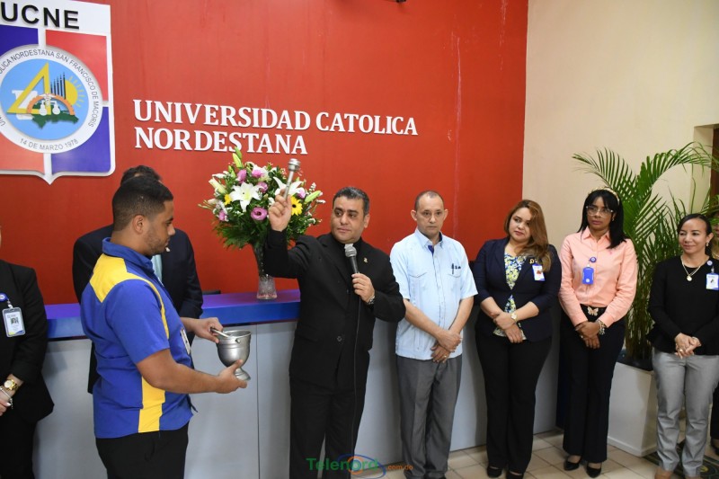 San Francisco de Macorís.- La mañana del martes 3 de mayo, el rector de la Universidad Católica Nordestana (UCNE), reverendo padre doctor Isaac García de la Cruz, bendijo nuevos departamentos que estarán brindado servicio en el Centro de Formación Continua de la Institución, ubicado en la calle Restauración esq. 27 de febrero de esta ciudad.