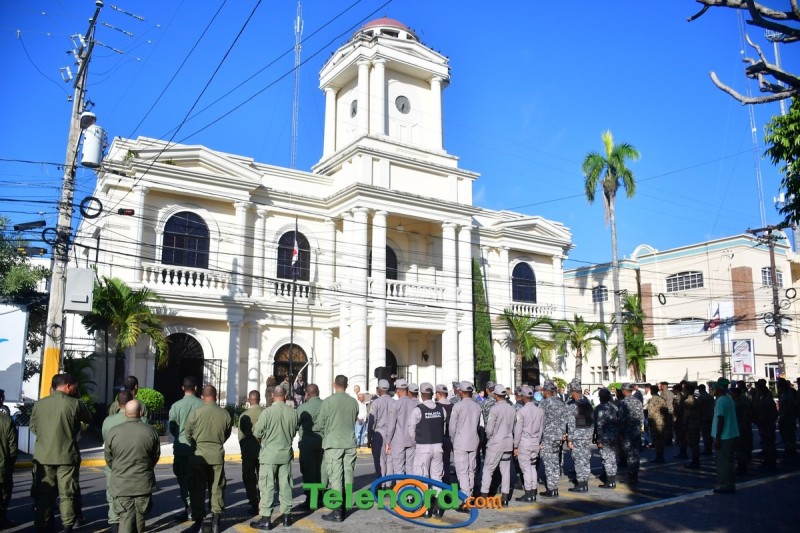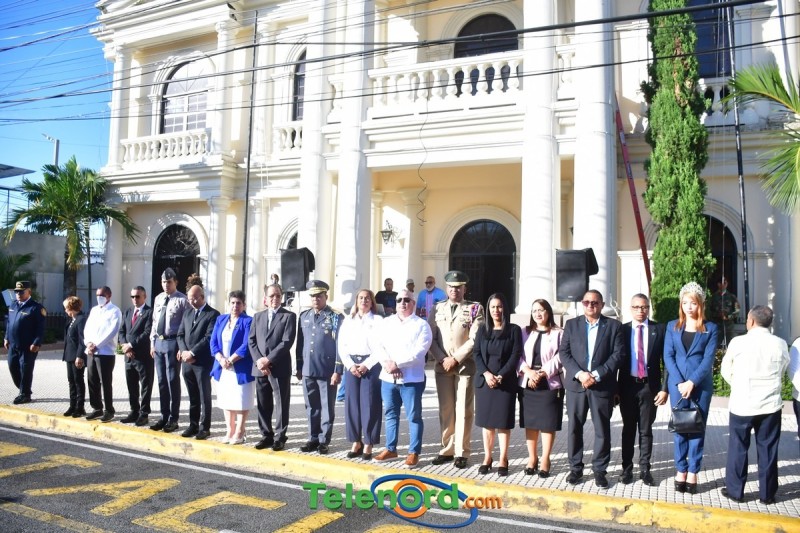 Los actos iniciaron con la interpretación del himno nacional e izamiento de la bandera, frente al Palacio Municipal, con la presencia del alcalde municipal Siquio NG de la Rosa, la gobernadora civil y provincial de Duarte Xiomara Cortés, y los miembros de la sala capitular.