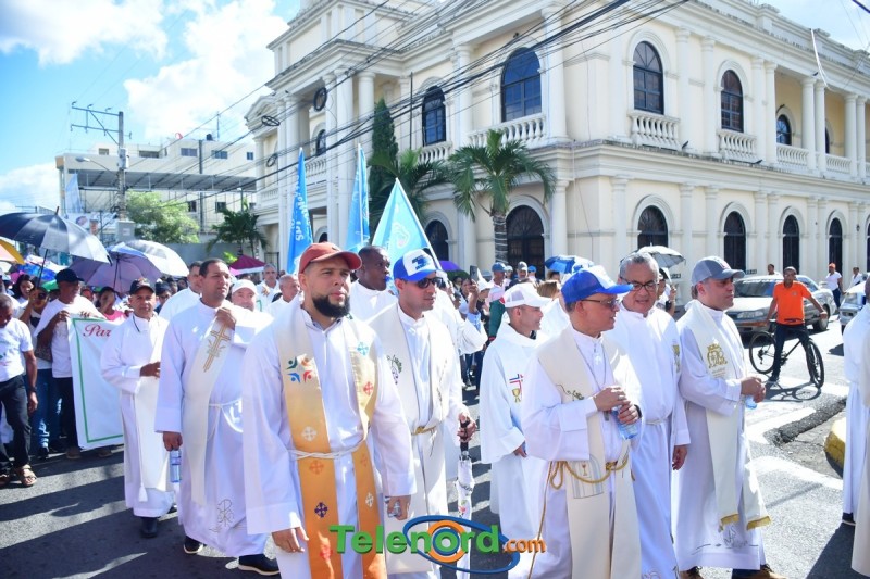 Esta caminata inició desde la Parque Duarte, recorriendo varias calles del casco urbano hasta llegar al Santuario de Getsemaní, donde se realizó una gran eucaristía por las familias, presidida por el Obispo de la Diócesis Mons. Alfredo de la Cruz Baldera, y acompañado por los párrocos de las iglesias católicas.