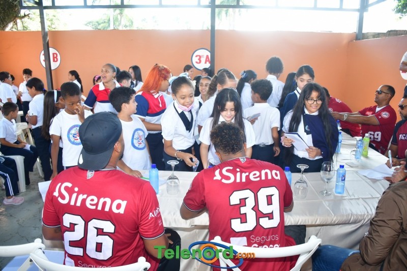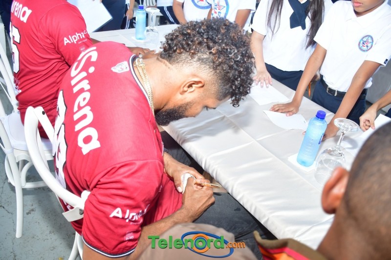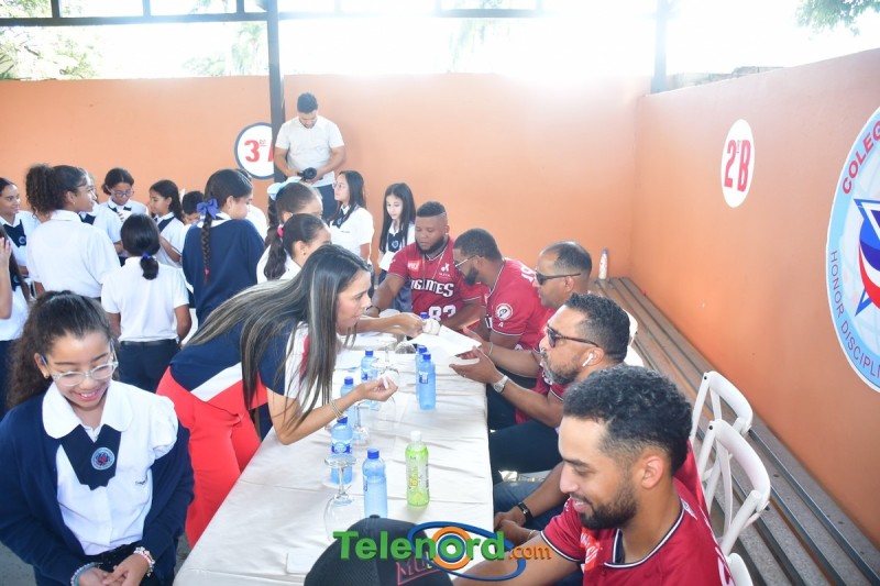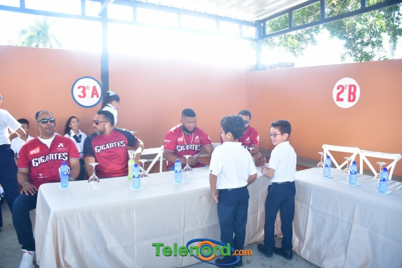Jugadores y coaches que integran el equipo cibaeño como Hansel Alberto, Carlos Peguero, entre otros, compartieron con los pequeños Gigantes y personal docente del centro educativo, firmando autógrafos, charlando y respondiendo preguntas.