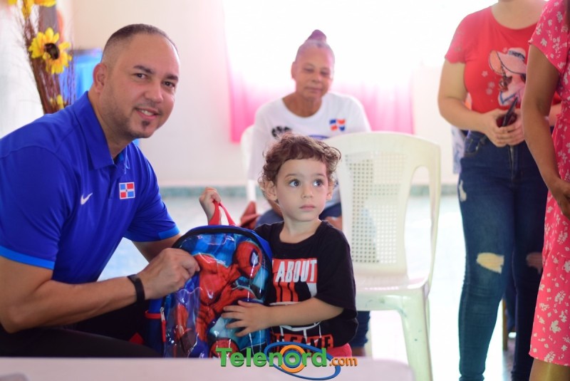 San Francisco De Macorís.- La Escuela de Baloncesto David Díaz en coordinación con la Fundación de Mujeres Comunitarias de la Provincia Duarte hizo entrega de útiles escolares a decenas de niños procedentes del sector San Martín.