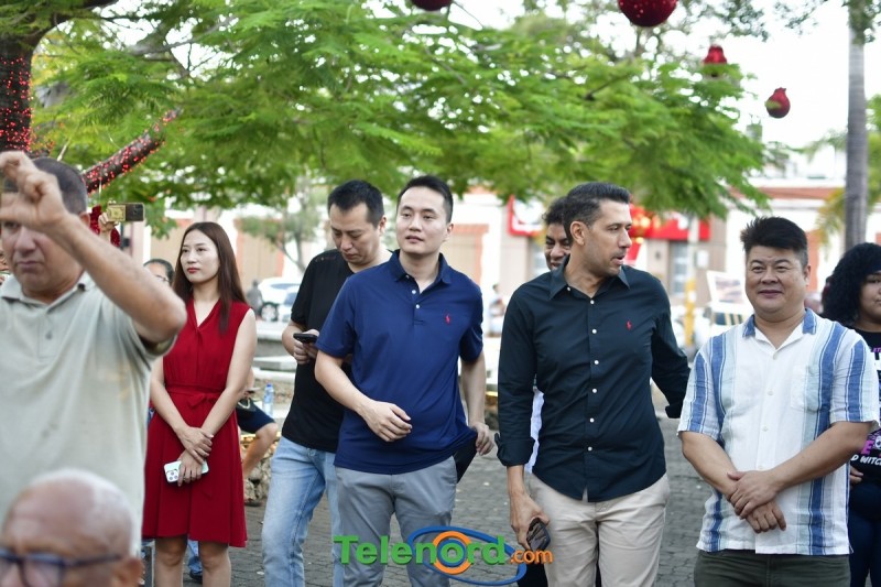En horas de la tarde, el embajador Luning, el alcalde Díaz Paulino y el ex –alcalde Ng. de la Rosa, cortaron la cinta para dejar inaugurada la zona de la comunidad china en el centro de la ciudad, luego la caminata de leones y dragón y jóvenes con trajes de etnias de china y Hanfu caminaron hacia el parque Duarte, donde los presentes se trataron de presentaciones artística, danzas chinas, kung Fu individual, entre otras.