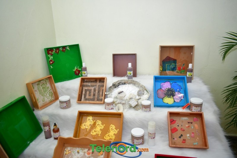 En esta exposición, los estudiantes presentaron trabajos de bordados, repostería, sastrería, vestuario, pintura, dibujos, artículos del hogar, decoración de interiores, cocina, entre otros.