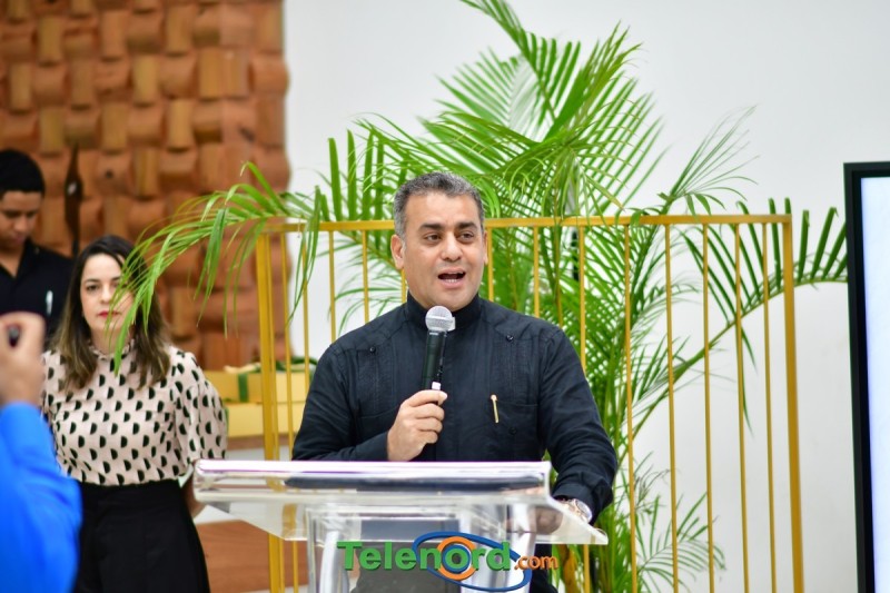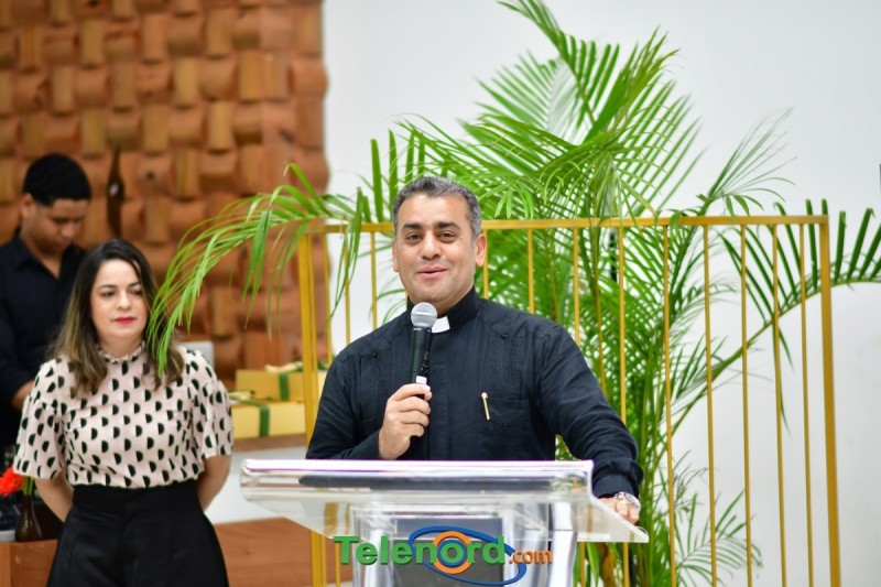 En el acto de apertura, el rector de la UCNE, reverendo padre doctor Isaac García de la Cruz, realizo oración, momento que aprovecho para felicitar a los estudiantes, por el esfuerzo en el montaje del evento.