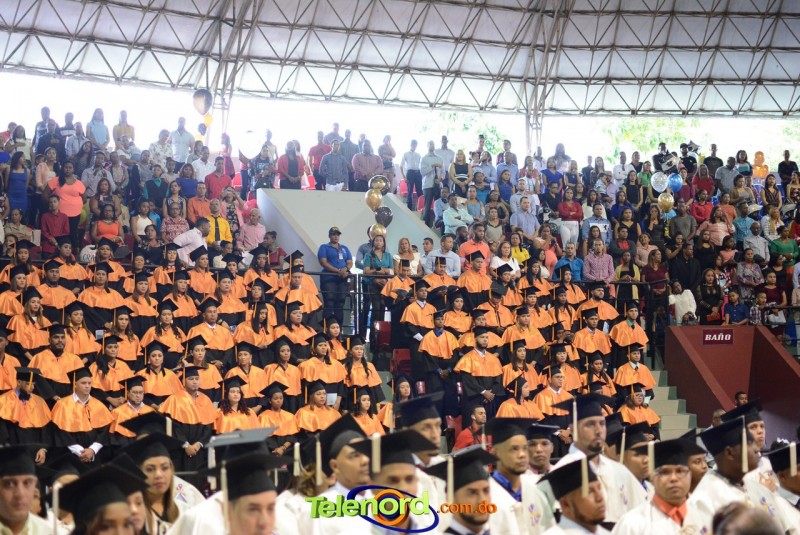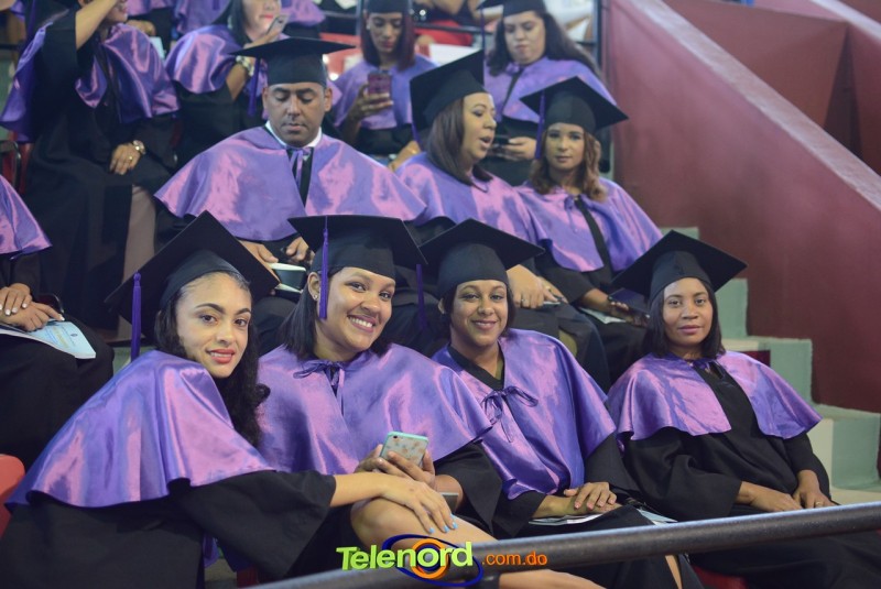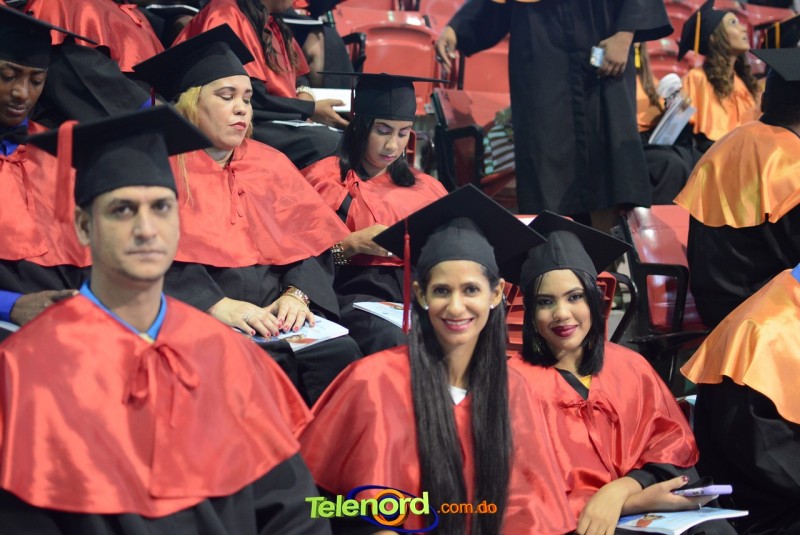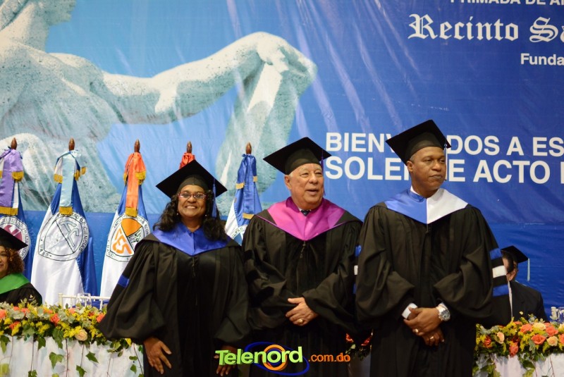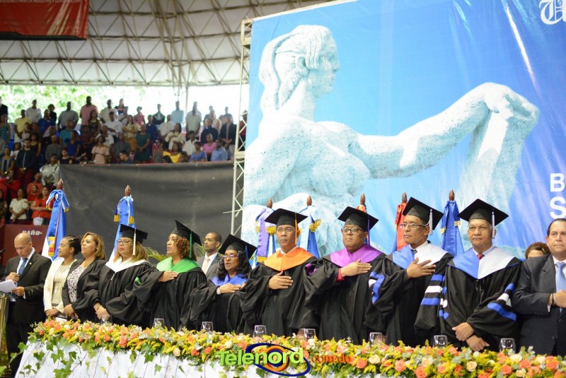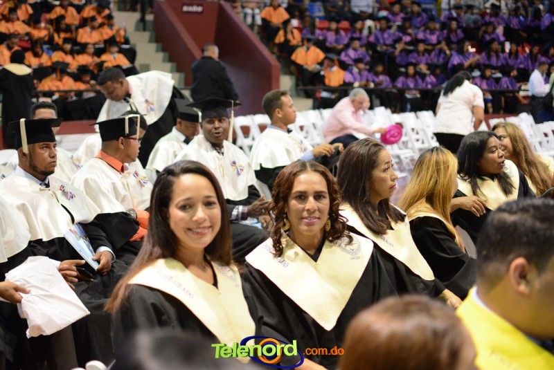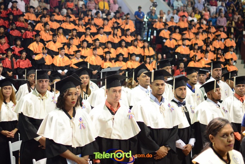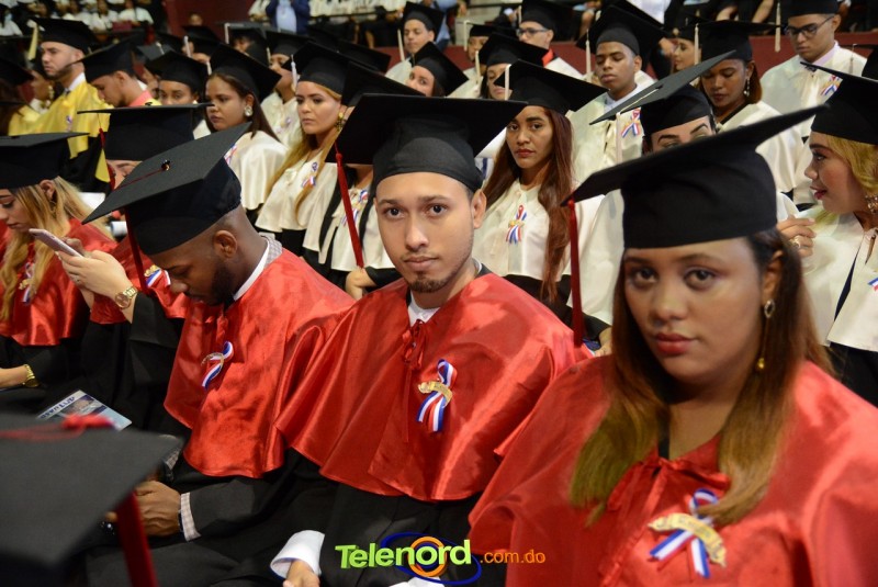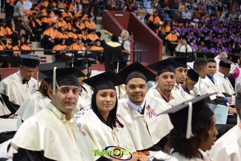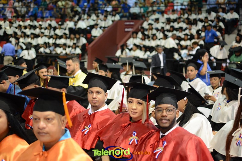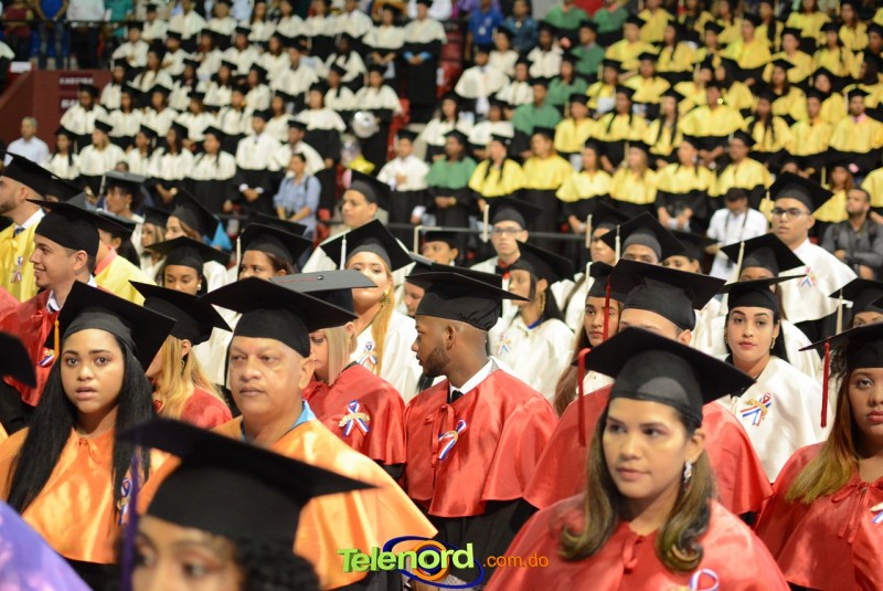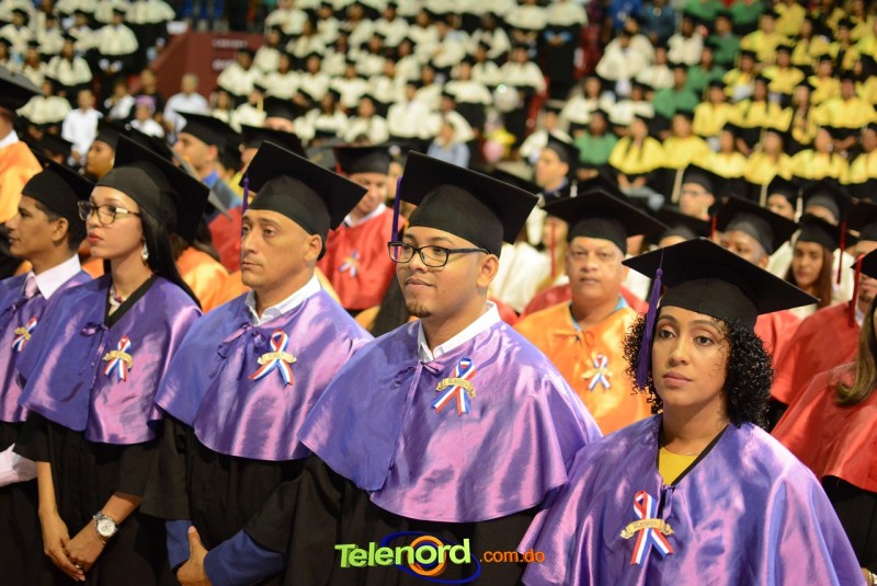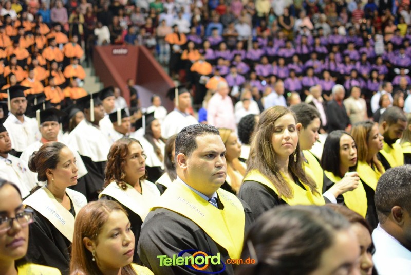 El solemne acto de grado y posgrado inició a las 9:00 de la mañana con el desfile de los graduandos en el área del Pabellón Bajo Techo Mario Ortega del Complejo Deportivo Juan Pablo Duarte, situado en la avenida Manuel Aurelio Tavárez Justo, salida a Nagua.