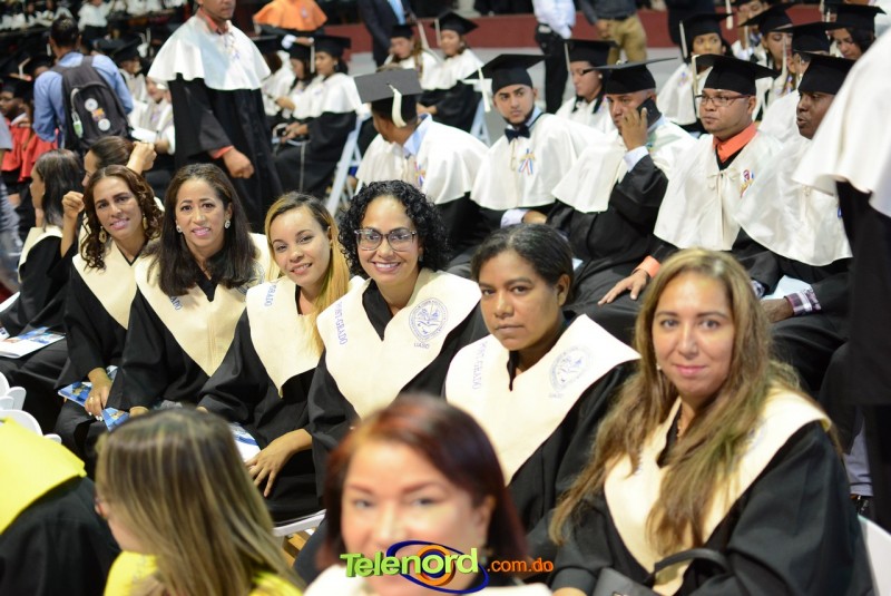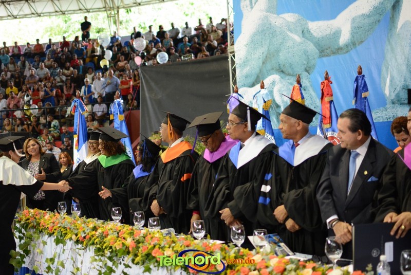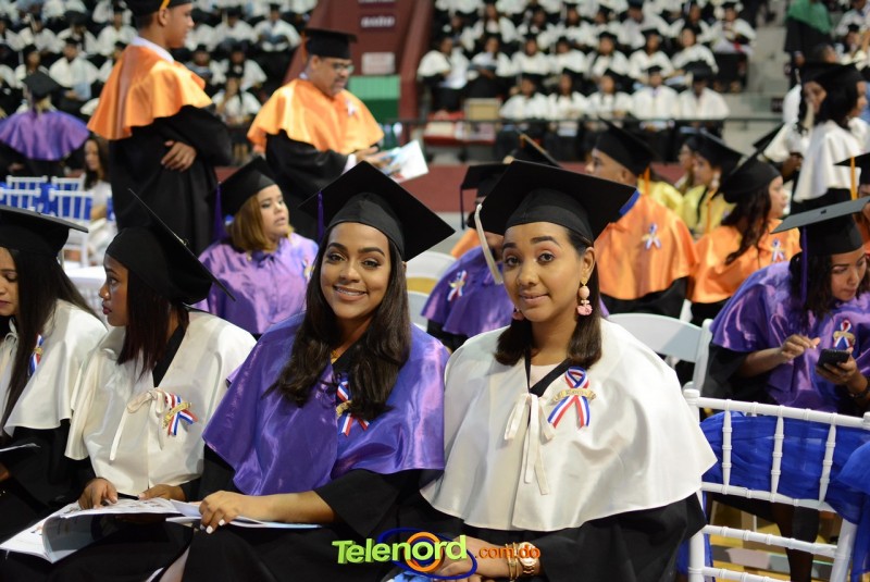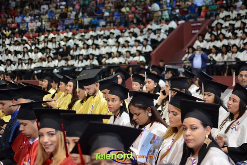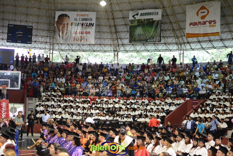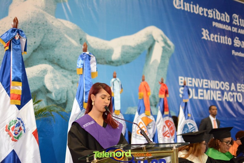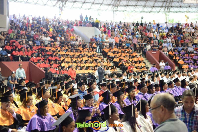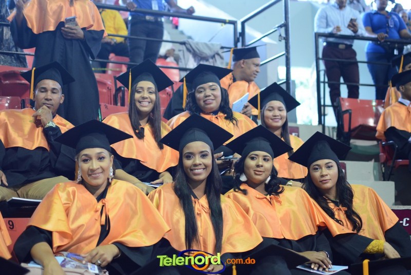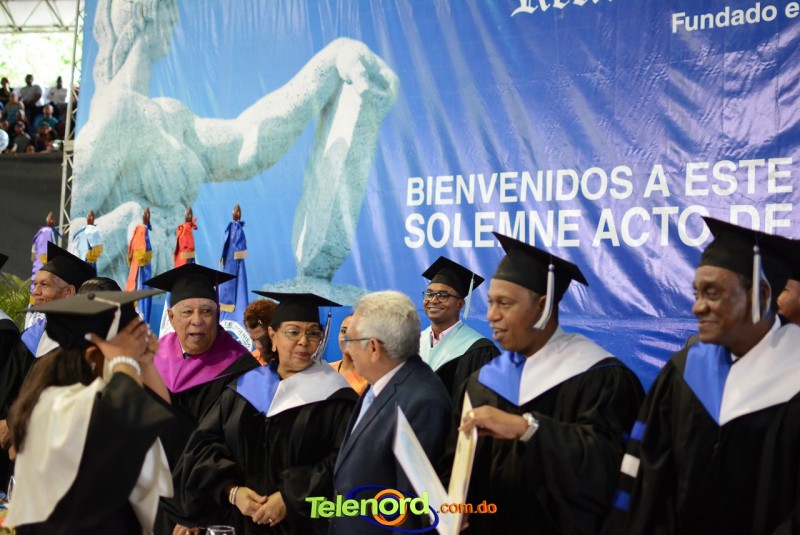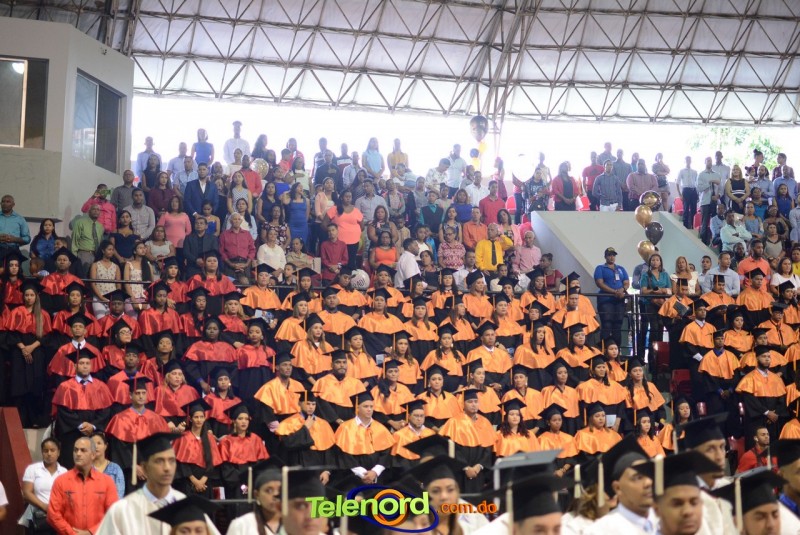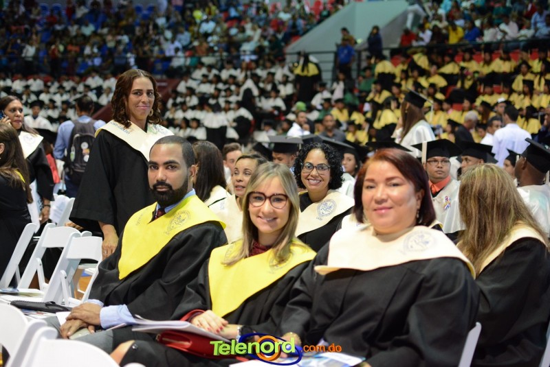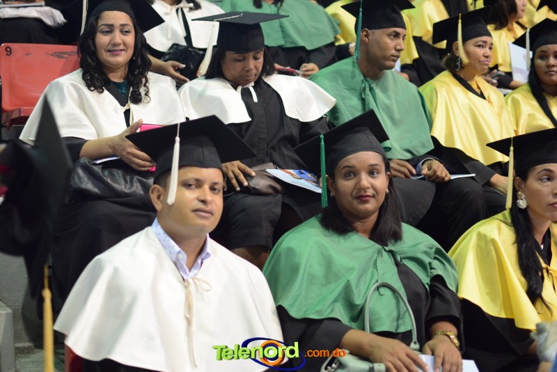 El solemne acto de grado y posgrado inició a las 9:00 de la mañana con el desfile de los graduandos en el área del Pabellón Bajo Techo Mario Ortega del Complejo Deportivo Juan Pablo Duarte, situado en la avenida Manuel Aurelio Tavárez Justo, salida a Nagua.