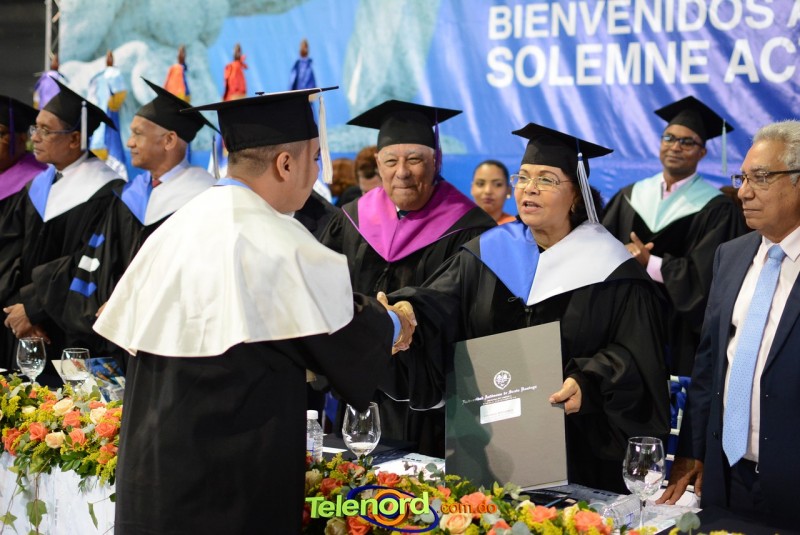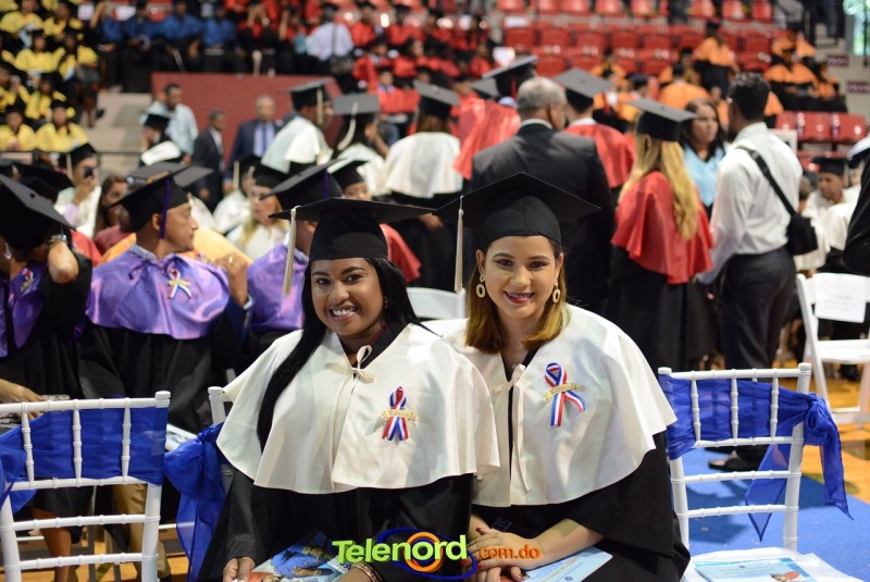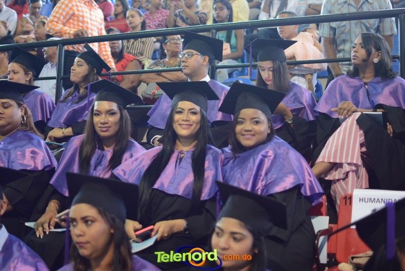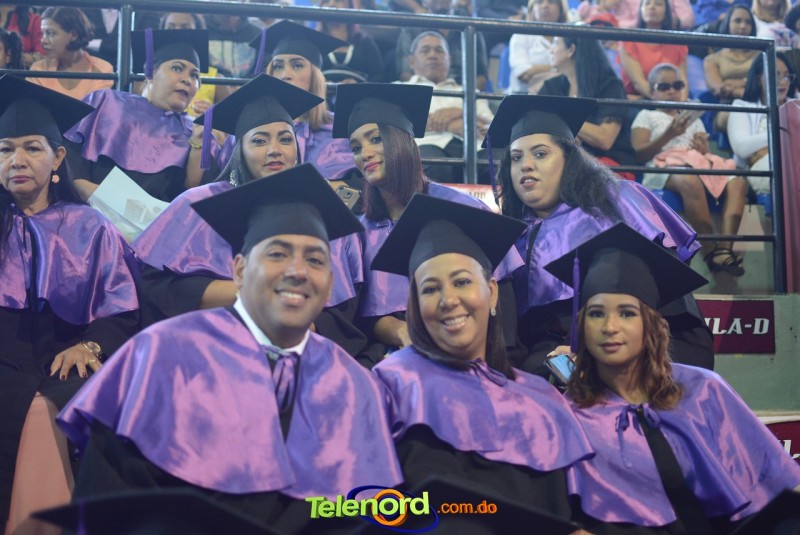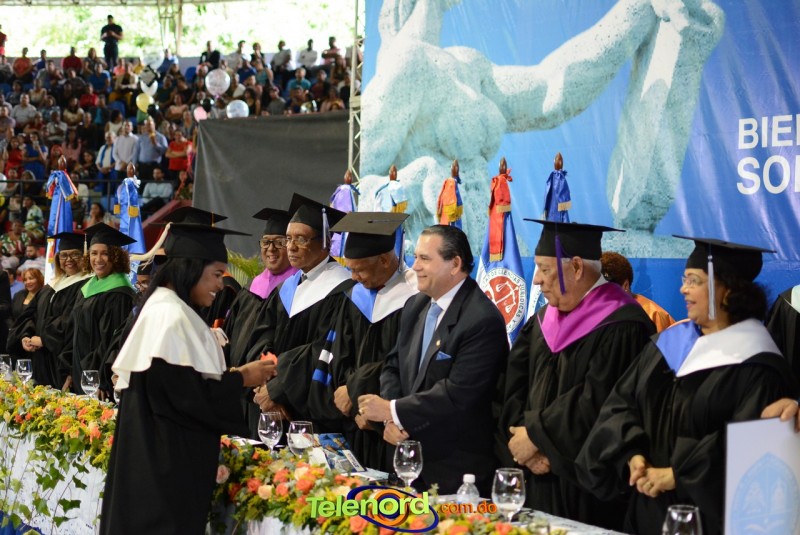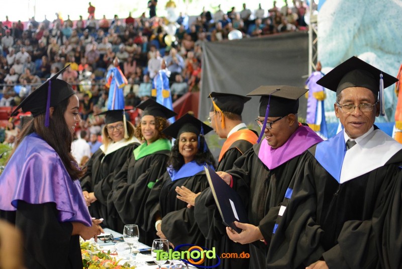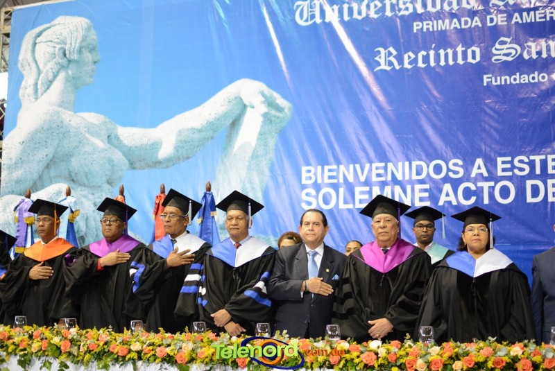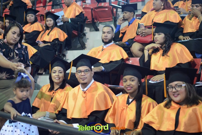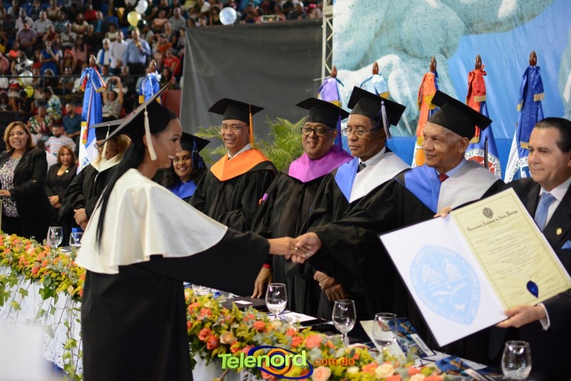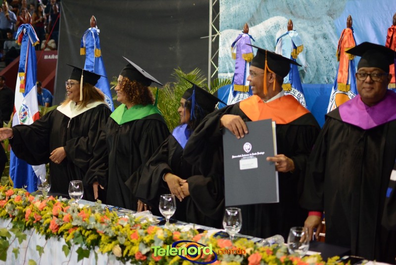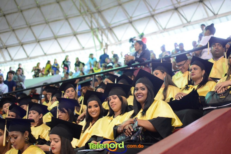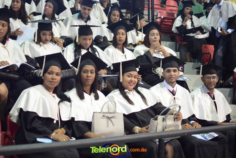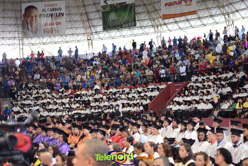 El solemne acto de grado y posgrado inició a las 9:00 de la mañana con el desfile de los graduandos en el área del Pabellón Bajo Techo Mario Ortega del Complejo Deportivo Juan Pablo Duarte, situado en la avenida Manuel Aurelio Tavárez Justo, salida a Nagua.