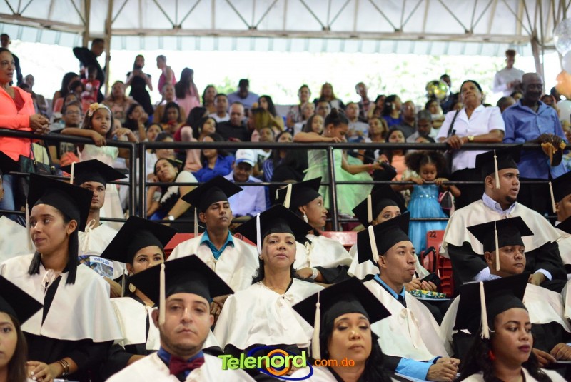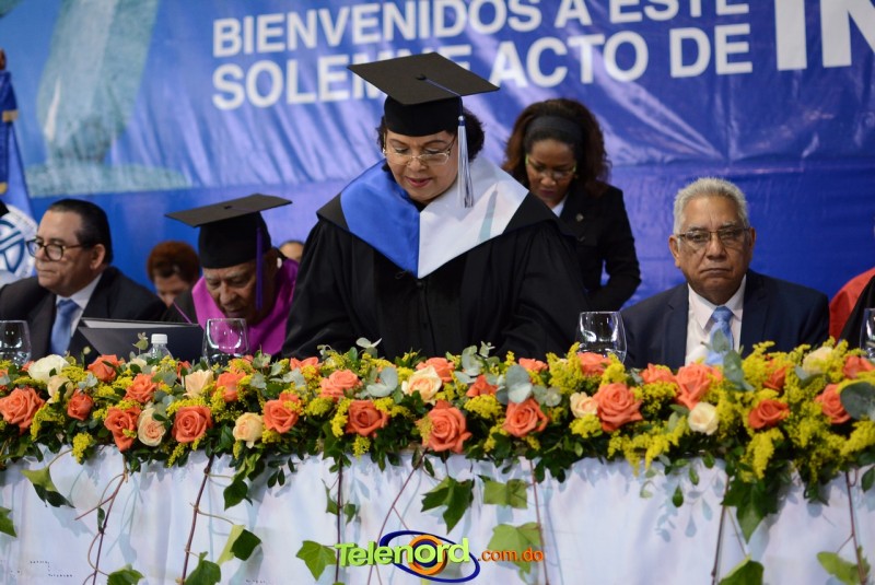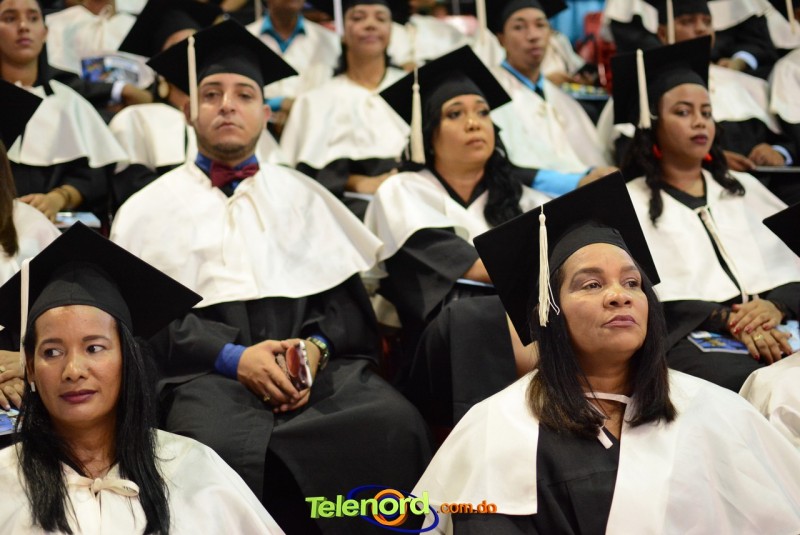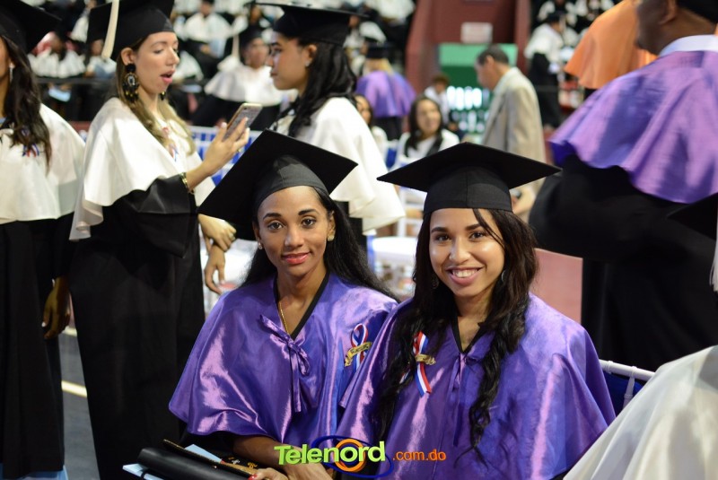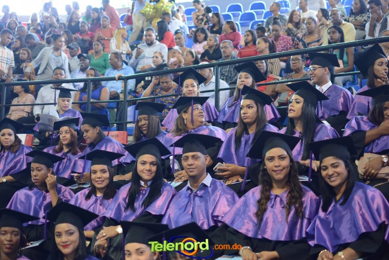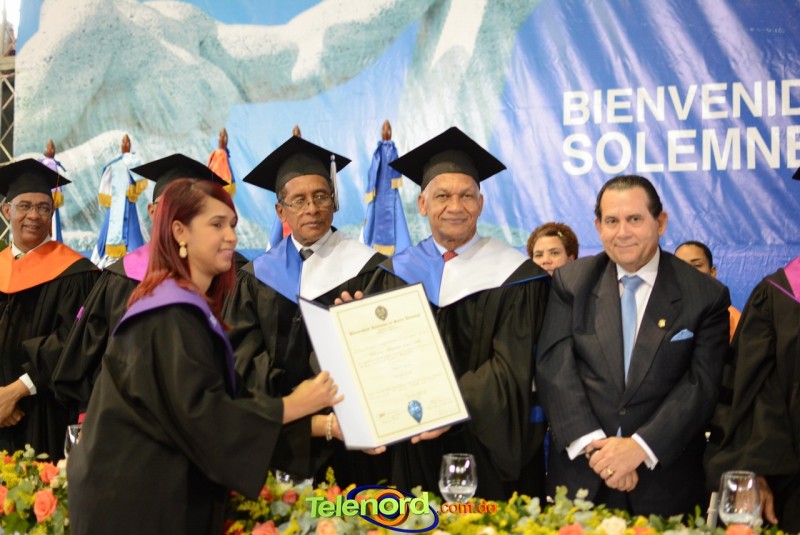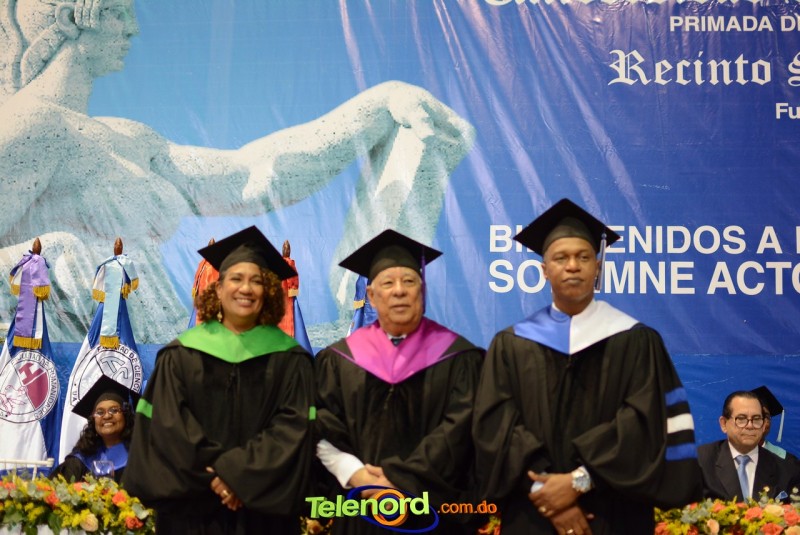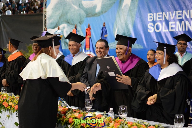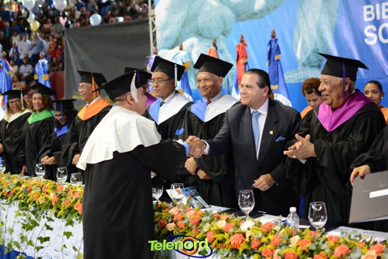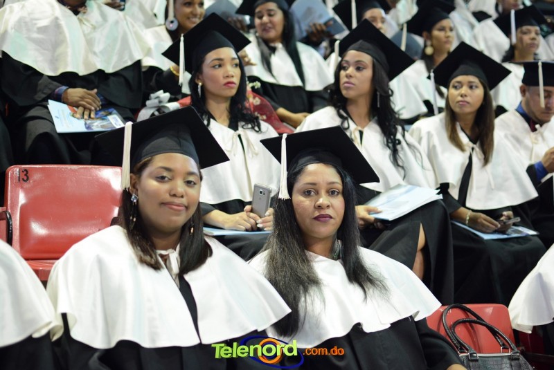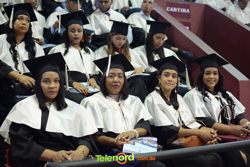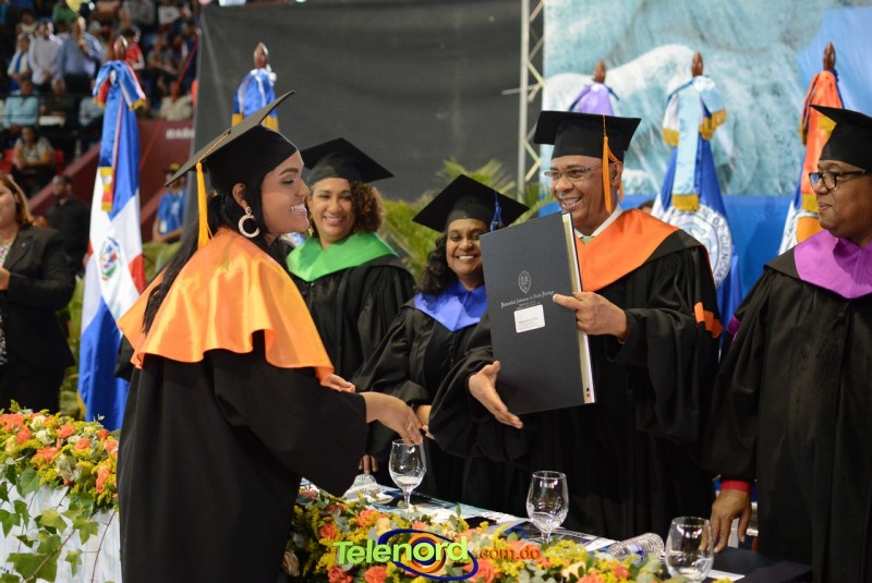 El solemne acto de grado y posgrado inició a las 9:00 de la mañana con el desfile de los graduandos en el área del Pabellón Bajo Techo Mario Ortega del Complejo Deportivo Juan Pablo Duarte, situado en la avenida Manuel Aurelio Tavárez Justo, salida a Nagua.