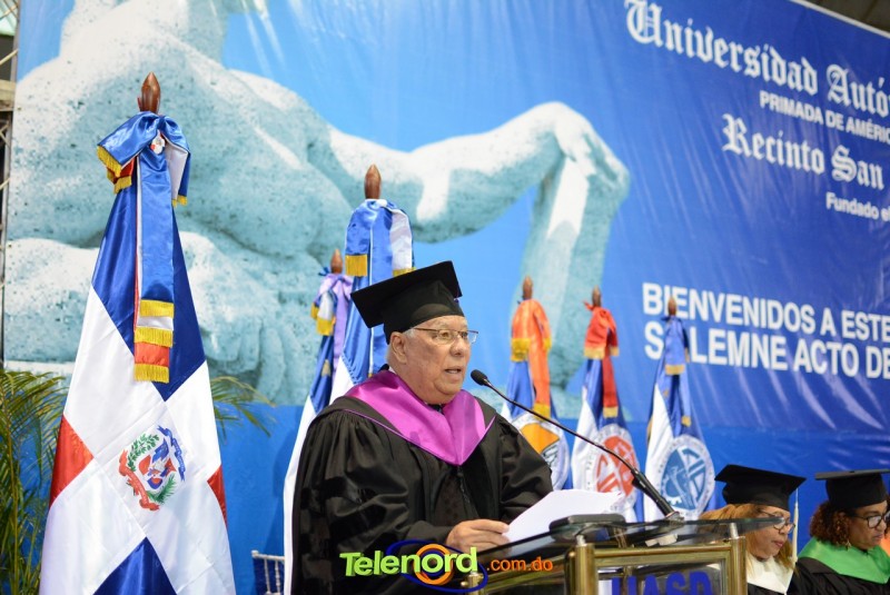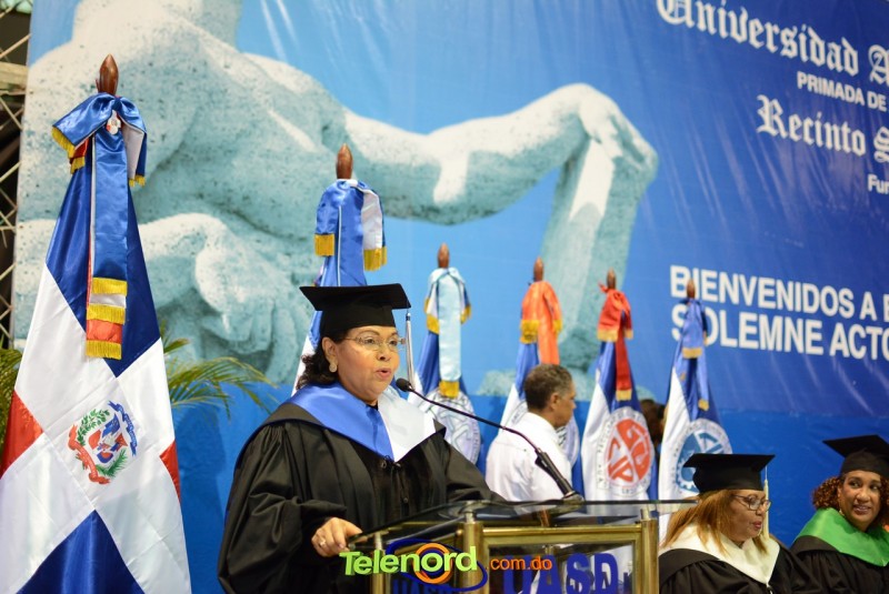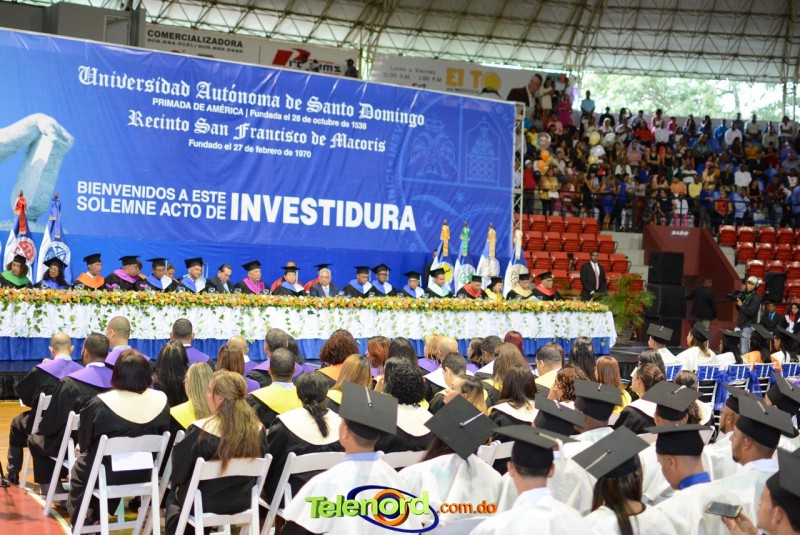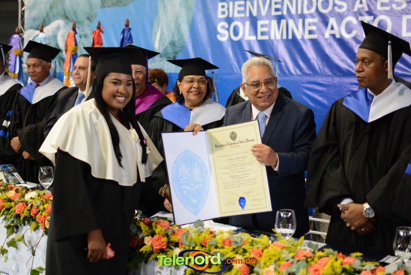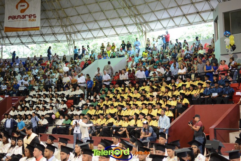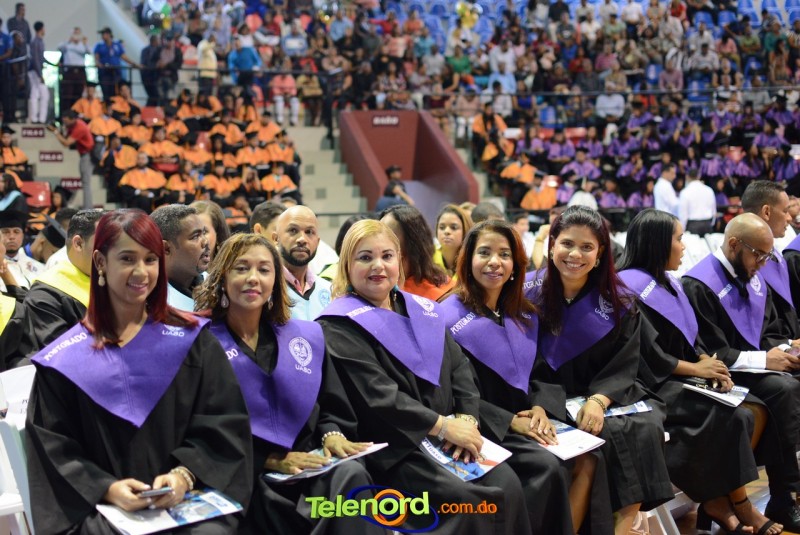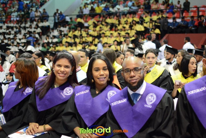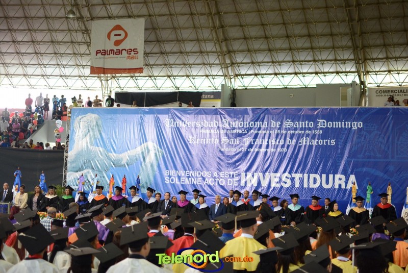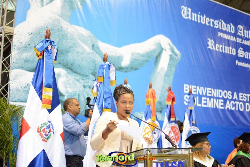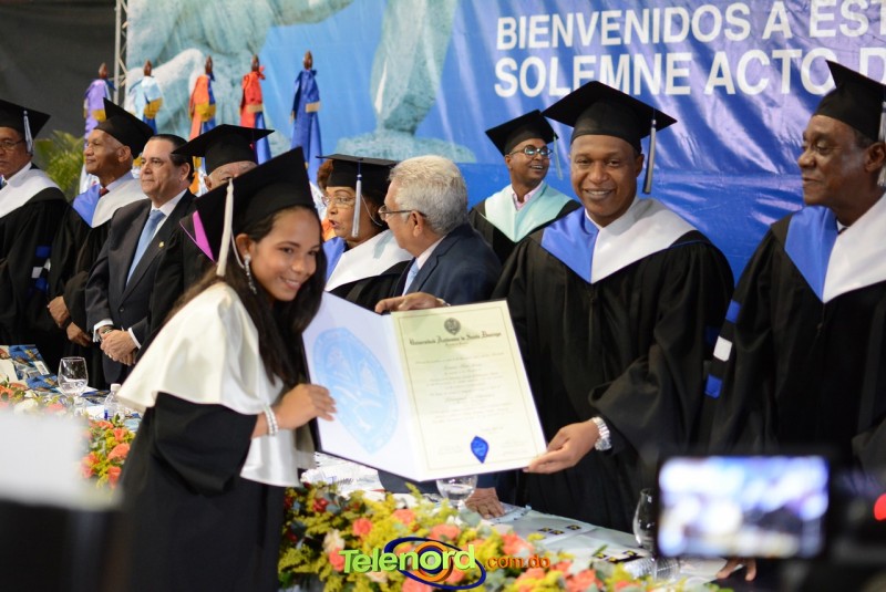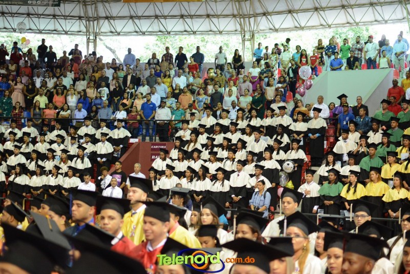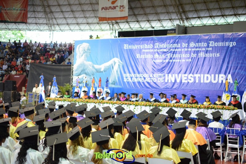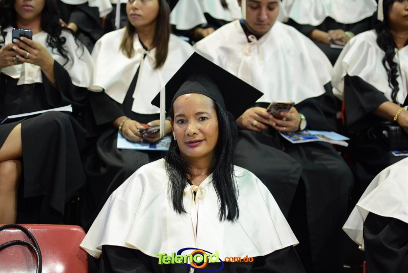 El solemne acto de grado y posgrado inició a las 9:00 de la mañana con el desfile de los graduandos en el área del Pabellón Bajo Techo Mario Ortega del Complejo Deportivo Juan Pablo Duarte, situado en la avenida Manuel Aurelio Tavárez Justo, salida a Nagua.