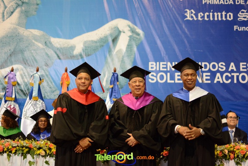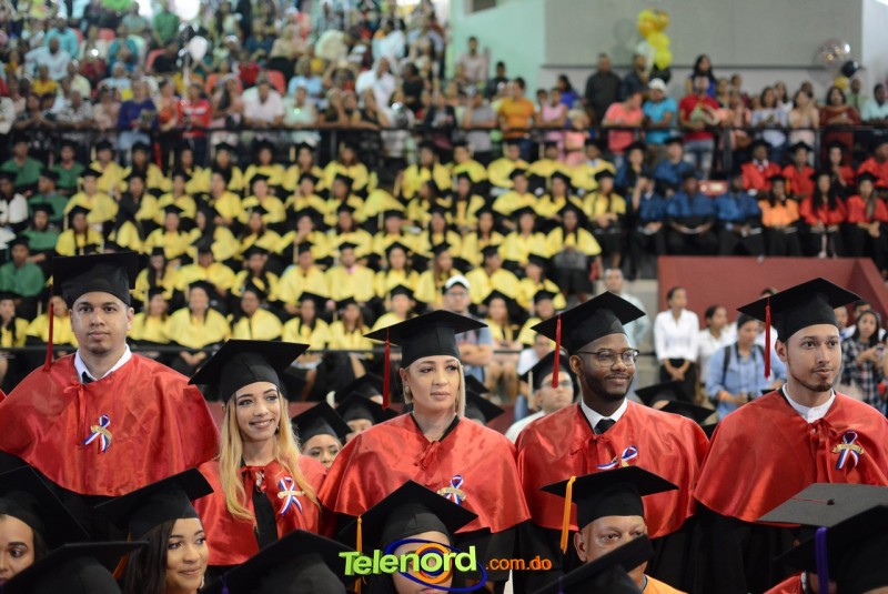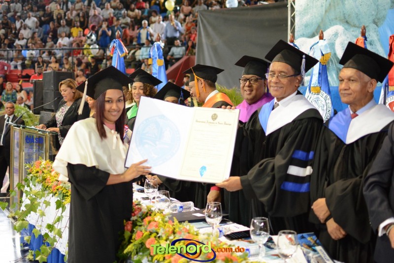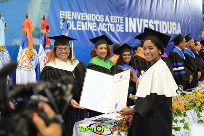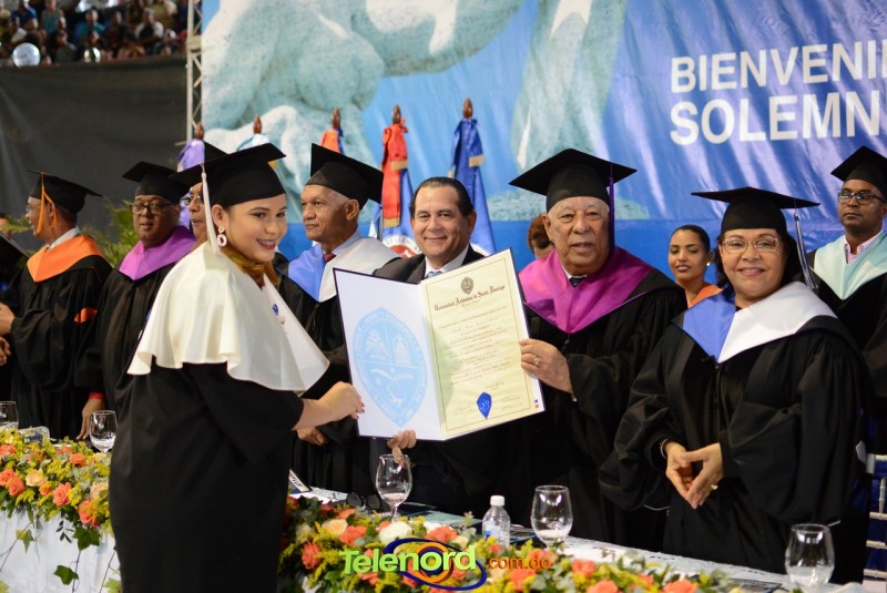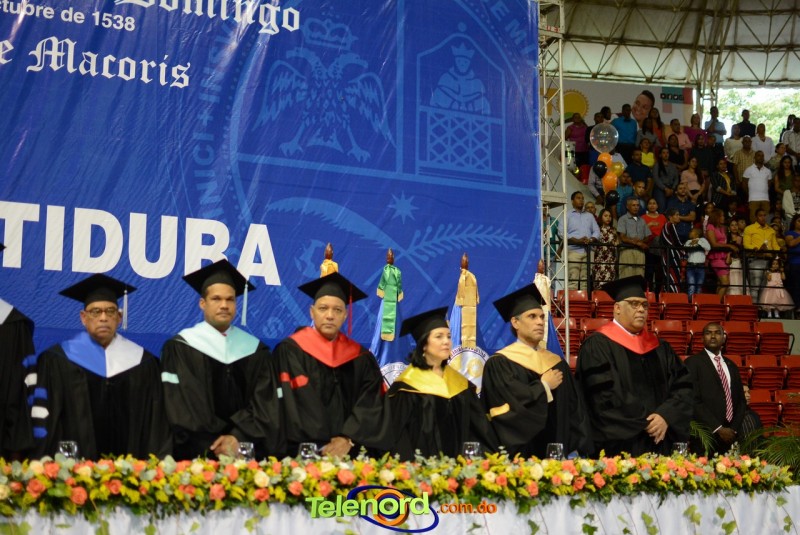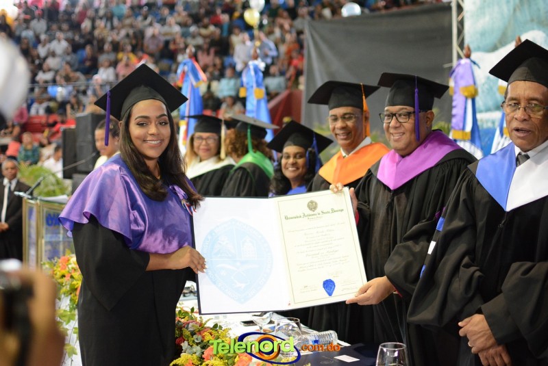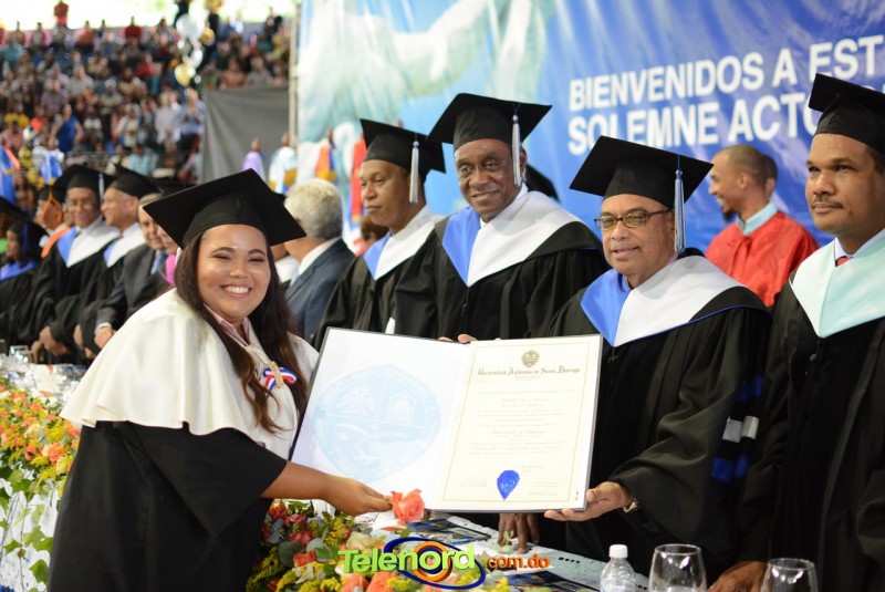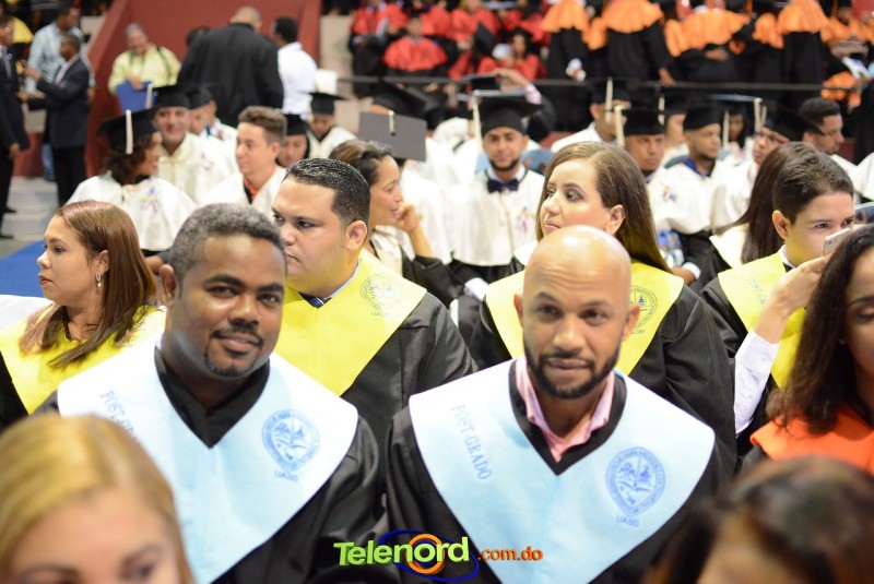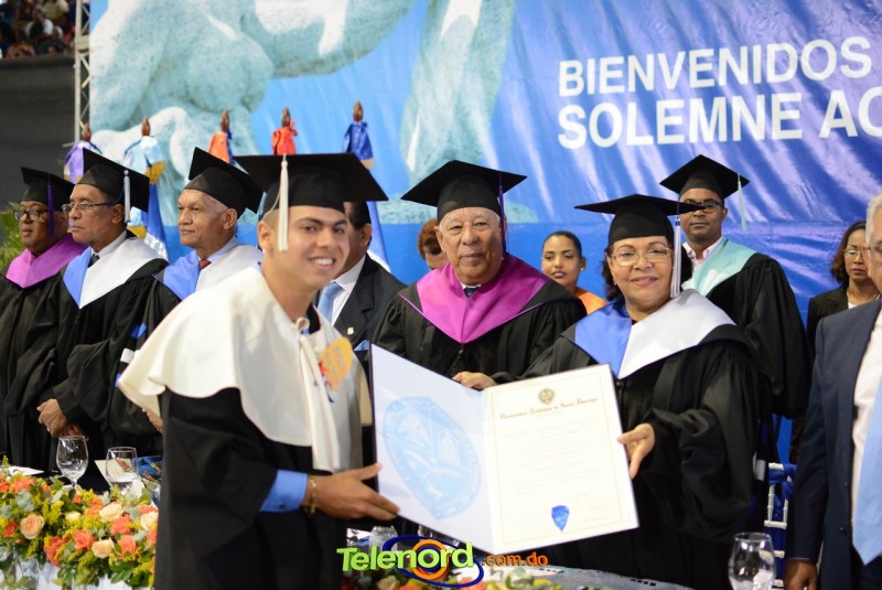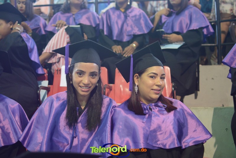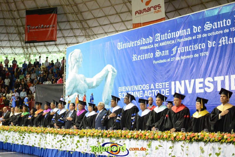 El solemne acto de grado y posgrado inició a las 9:00 de la mañana con el desfile de los graduandos en el área del Pabellón Bajo Techo Mario Ortega del Complejo Deportivo Juan Pablo Duarte, situado en la avenida Manuel Aurelio Tavárez Justo, salida a Nagua.