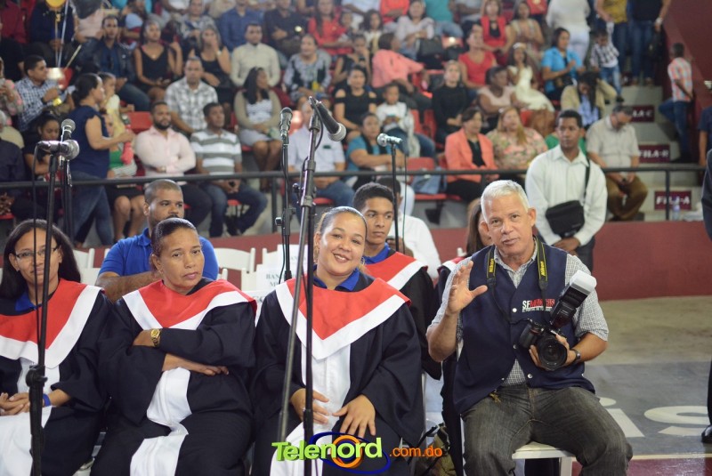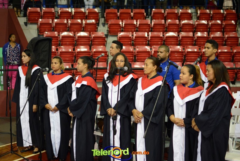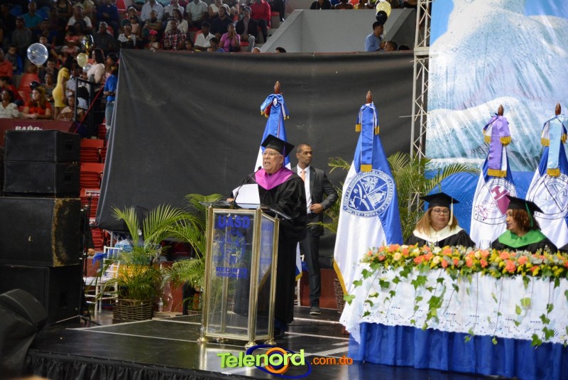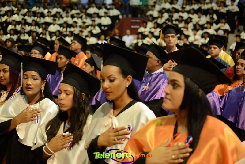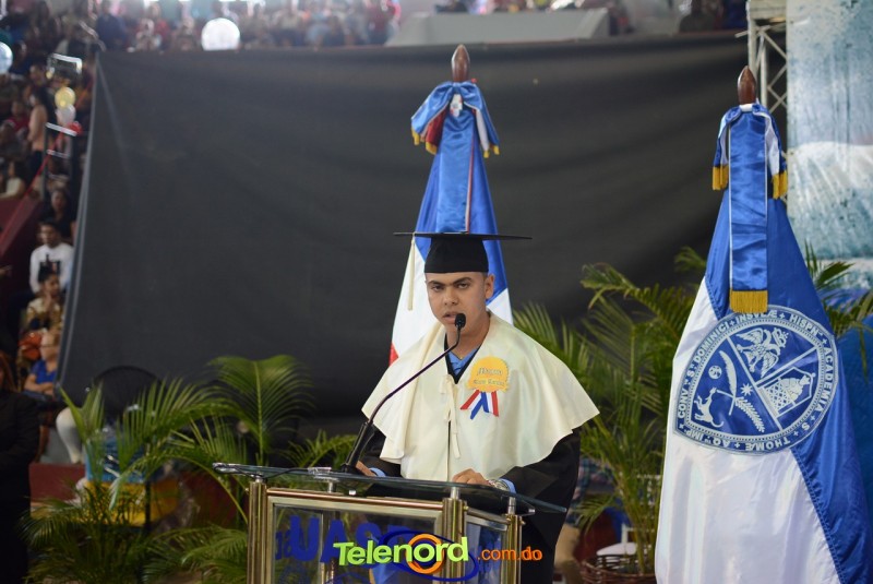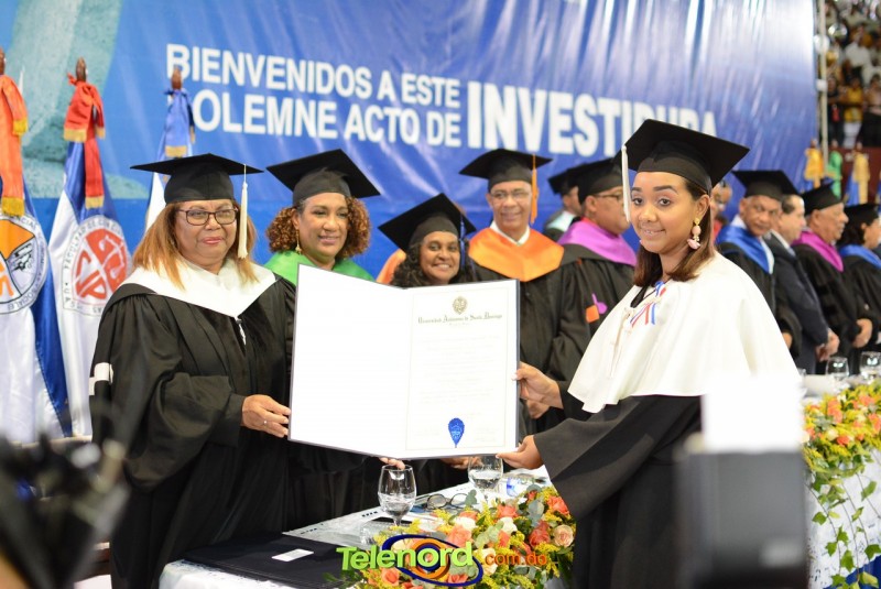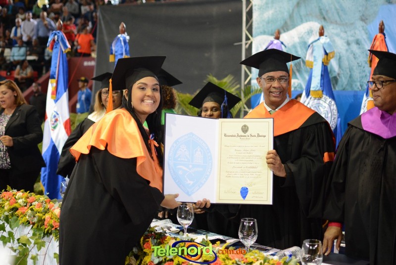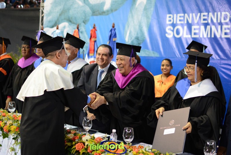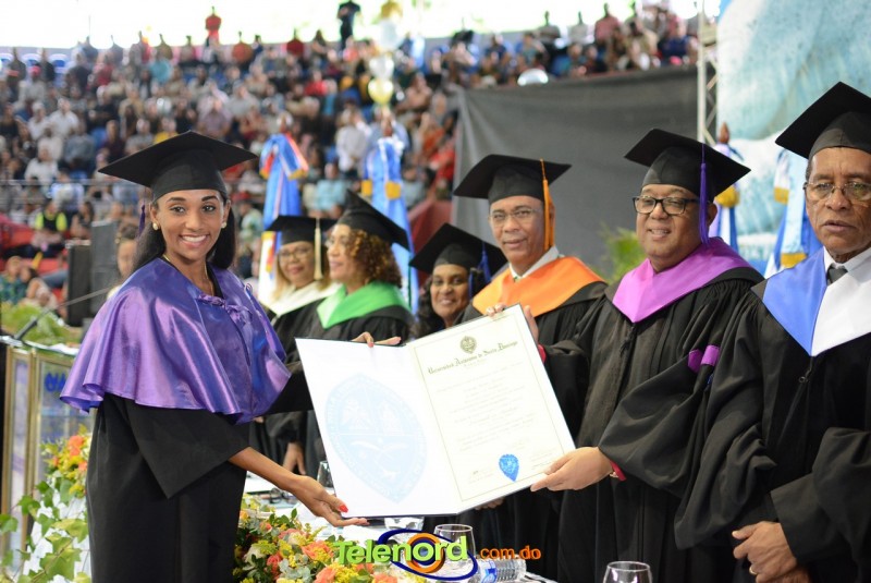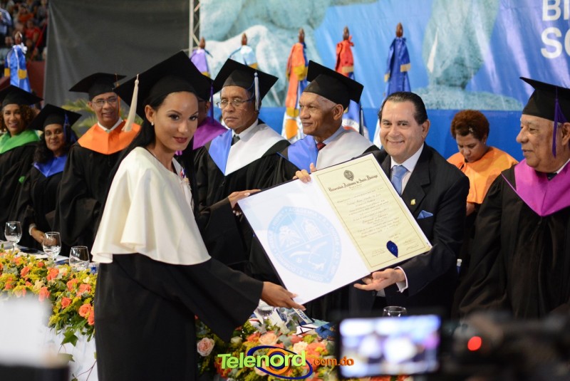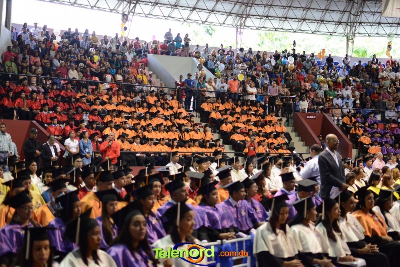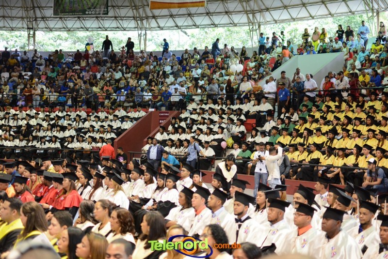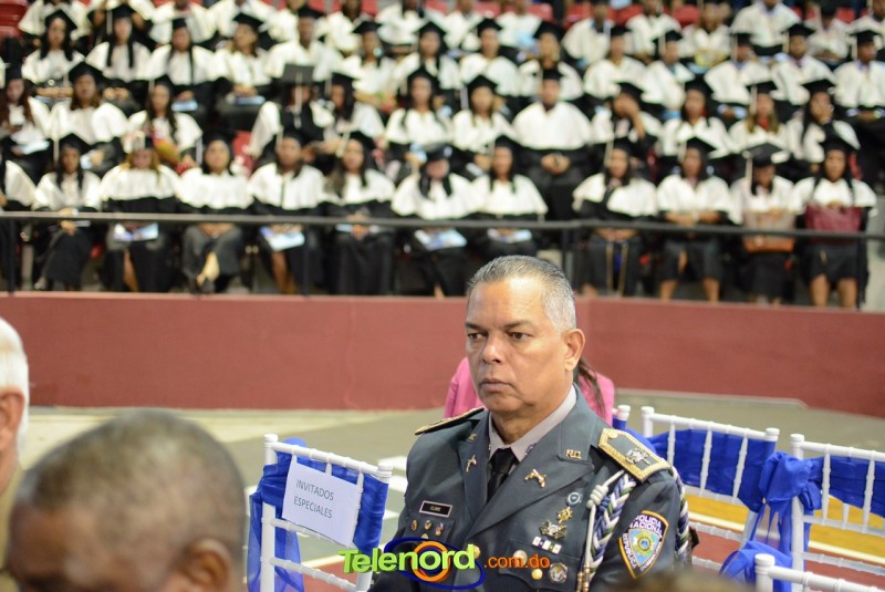 El solemne acto de grado y posgrado inició a las 9:00 de la mañana con el desfile de los graduandos en el área del Pabellón Bajo Techo Mario Ortega del Complejo Deportivo Juan Pablo Duarte, situado en la avenida Manuel Aurelio Tavárez Justo, salida a Nagua.