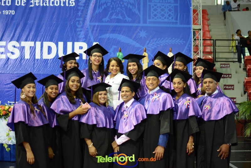 Los graduandos que la UASD entregó a la sociedad francomacorisana, en esta ocasión, 73 pertenecen a la Facultad de Humanidades; 89 a la Facultad de Ciencias Económicas y Sociales; 35 a la Facultad de Ciencias Jurídicas y Políticas; seis (6) a la Facultad de Ingeniería y Arquitectura; seis (6) a la Facultad de Ciencias Agronómicas y Veterinarias; 220 de la Facultad de Ciencias de la Educación; 76 a la Facultad de Ciencias de la Salud; de los cuales 48 son médicos.