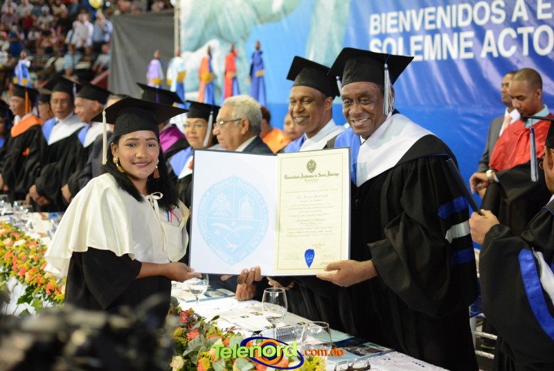 Del total de graduandos, ciento cuarenta (140) se invistieron con lauros académicos, siendo el bachiller Luís Miguel Brito, de la carrera de Educación, Mención Filosofía y Letras, el del mayor incide, con una puntuación de 93.7, Magna Cum Laude, por lo cual le correspondió el discurso de gracias en nombre de los graduandos de grado.