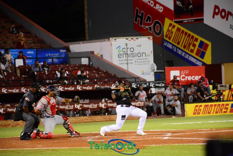 Franmil Reyes disparó de cuadrangular en la primera entrada, su primero en la Liga Dominicana de Beisbol, dándole la ventaja al Escogido, 1-0. Los Gigantes fabricaron cinco en la cuarta entrada, Marcell Ozuna con rodado de selección, remolcó la primera carrera vuelta, Hanser Alberto con sencillo impulsó la segunda.