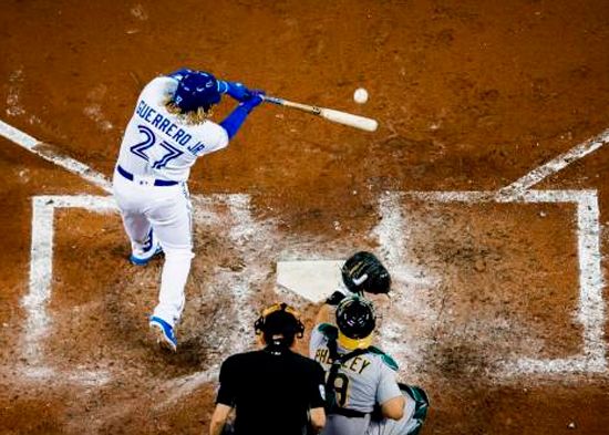 El dominicano Vladimir Guerrero Jr., un pelotero de sueldo mínimo ascendido recientemente a las Grandes Ligas por los Azulejos de Toronto en la Liga Americana, en los últimos 15 juegos, tiene mejor promedio de bateo que Bryce Harper de los Filis de Filadelfia, dueño de un contrato millonario con el conjunto de la Liga Nacional.
