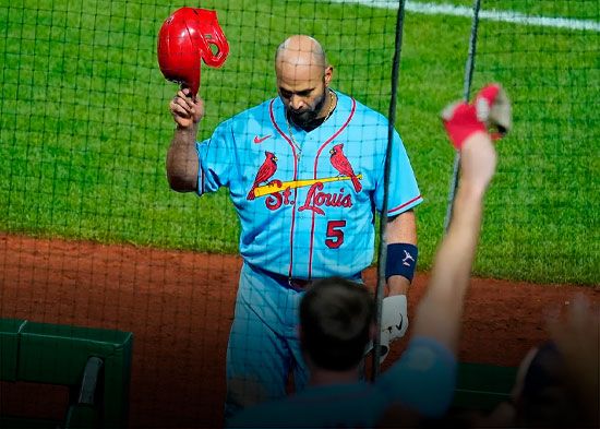 Pujols aportó además un doble y un sencillo por los Cardenales, líderes de la División Central de la Liga Nacional. Su sencillo remolcador en el octavo inning igualó la pizarra 4-4.