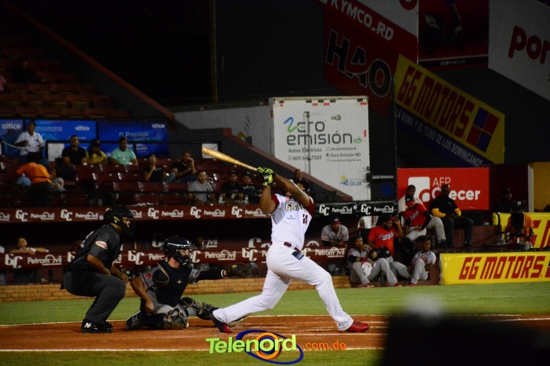 SAN FRANCISCO DE MACORÍS.- Vladimir Balentien conectó cuadrangular con dos a bordo en la cuarta entrada, en el triunfo 4-2, de los Gigantes del Cibao frente a los Leones del Escogido este martes en el Julián Javier.