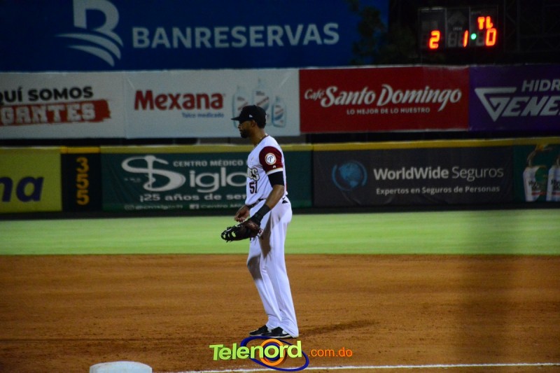 Por los Gigantes; Hanser Alberto 4-1 doble (3), remolcada, anotada, Vladimir Balentien de 4-1, anotada , remolcada , jonrón (2) y Henry Urrutia 4-1, doble y anotada.