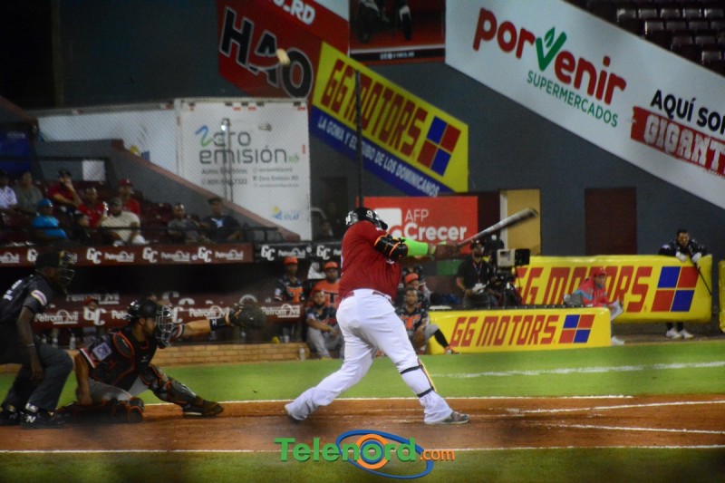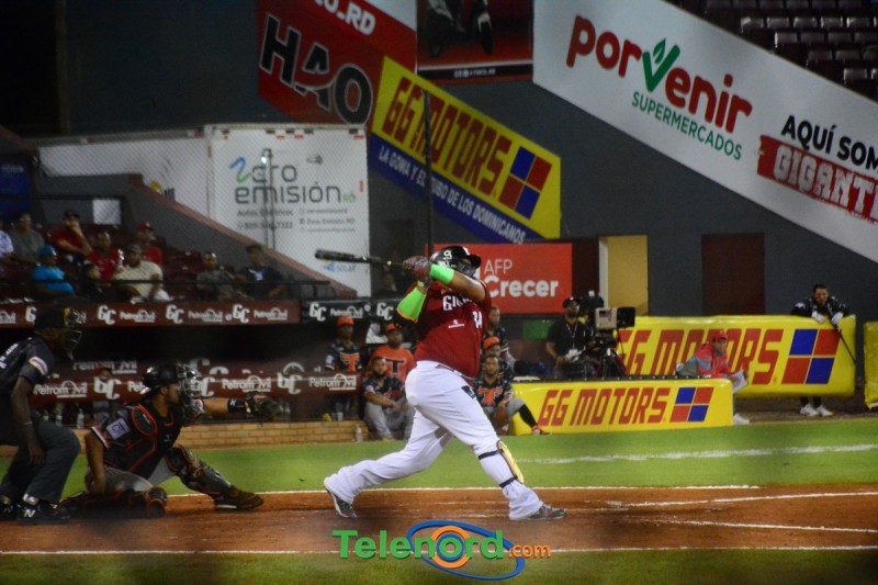 Por Gigantes; Carlos Peguero 4-1, remolcada; Tito Polo 4-1, triple, remolcada, anotada; Carlos Paulino 2-1, doble, remolcada, anotada y Luis Liberato de 3-1 , anotada.
