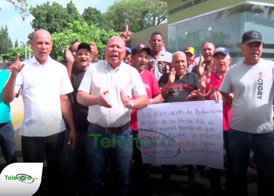 En el piquete realizado en la mañana del miércoles 10 de mayo, en la parte frontal de la regional Nordeste del Ministerio de Agricultura, los agricultores exigen que sean beneficiados con el préstamo a tasa cero para los productores de las provincias, que sufrieron los efectos del fenómeno atmosférico, en septiembre del 2022." />