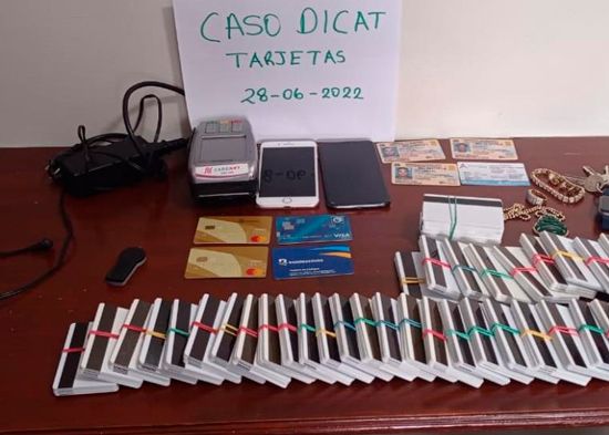 La Policía Nacional anunció el apresamiento en Santo Domingo Este de tres hombres como presuntos integrantes de una banda dedicada a realizar transacciones fraudulentas mediante la clonación de tarjetas pertenecientes a beneficiarios de los programas de la Administradora de Subsidios Sociales (ADESS).