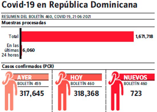 El sistema epidemiológico dominicano notificó ayer 11 defunciones a causa de la covid-19, dijo que dos de ellas ocurrieron en las últimas 24 horas Asimismo, el sistema de vigilancia reportó que en las últimas 24 horas ocurrieron 723 nuevos contagios a causa de la pandemia.