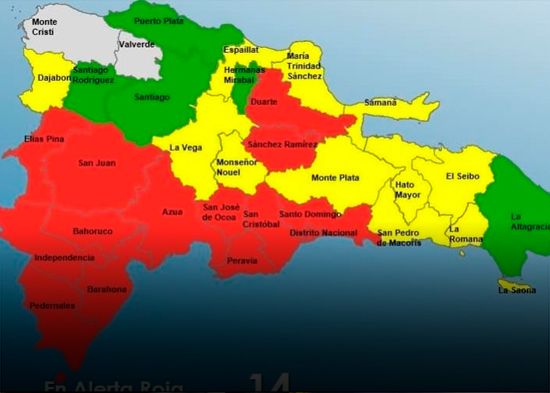 El Centro de Operaciones de Emergencias (COE) alertó este domingo que de acuerdo al boletín meteorológico de la Oficina Nacional de Meteorología (ONAMET) se espera que fuertes aguaceros, tormentas eléctricas y ráfagas de viento continúen produciéndose en varias provincias del país desde las primeras horas del día, por lo que modificó los niveles de alerta en prevención a posibles incidentes desgraciados.
