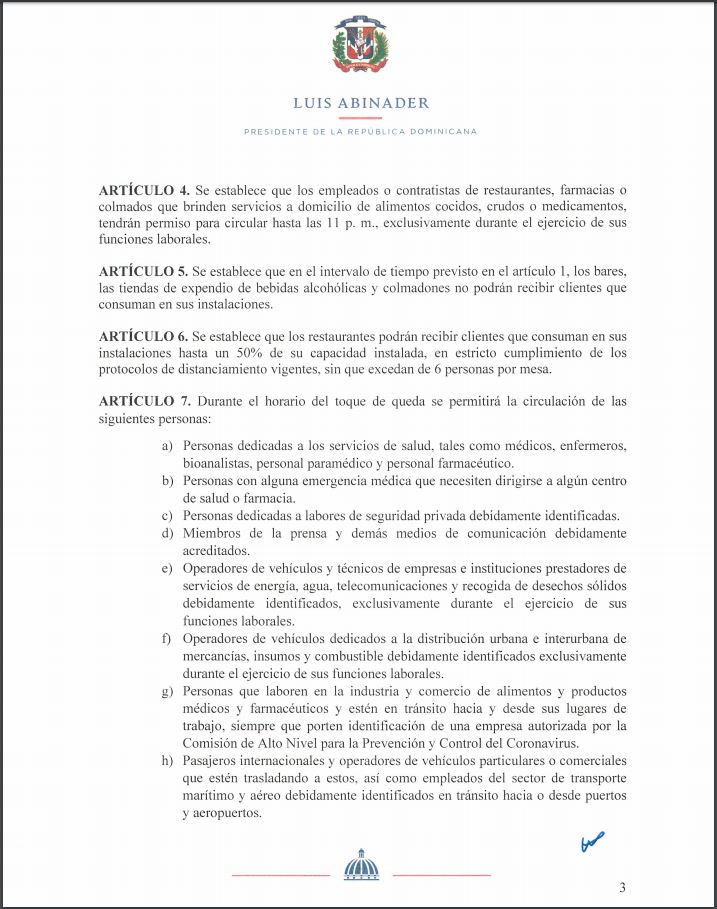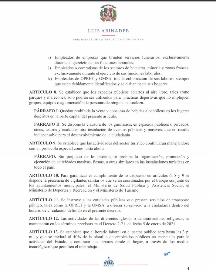 Con el decreto 7-21, el presidente de la República, Luis Abinader, informó la nueva fecha del toque de queda que regirá en el país y las nuevas normas con las cuales busca atenuar los contagios por COVID-19.