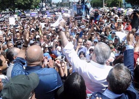 El líder opositor caminó un tramo de la avenida Winston Churchill en dirección al Congreso, acompañado de miles de seguidores. En la ocasión, los perremeístas coincidieron con dirigentes de los partidos Alianza por la Democracia, Frente Amplio, Partido Revolucionario Social Demócrata, y las organizaciones cívicas Bien Común y País que Queremos, y de un representante de Marcha Verde.