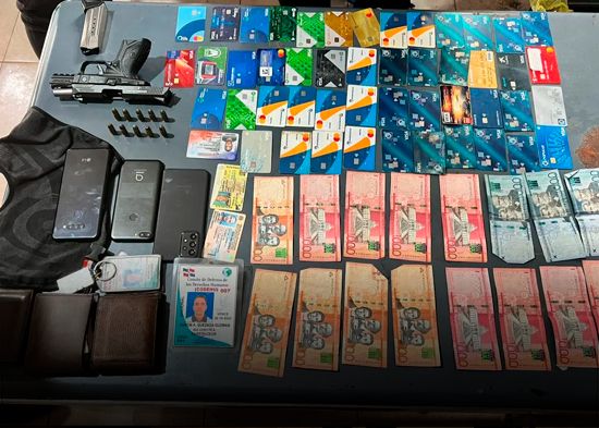 Al momento de la requisa protocolar, a Ramón Alexander Quezada Guzmán se le ocupó una pistola marca Ruger, con la numeración limada, su cargador y ocho cápsulas, así como también 47 tarjetas de crédito de diferentes entidades bancarias y la suma de $14,500 pesos.