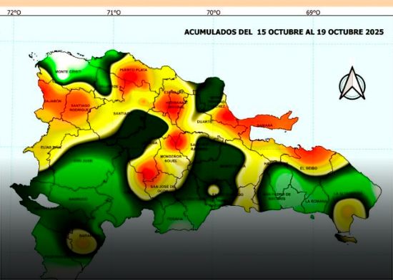Estas lluvias serán principalmente sobre El Gran Santo Domingo, La Altagracia, San Pedro de Macorís, La Romana, El Seibo, Hato Mayor, La Vega, Santiago, Santiago Rodríguez, Puerto Plata, Valverde, Monte Cristi, Dajabón, San Juan, San José de Ocoa, Hermanas Mirabal, Espaillat, Monte Plata, Monseñor Nouel, Azua y Samaná. En la noche y madrugada, las precipitaciones disminuirán gradualmente, no obstante, hacia los poblados cercanos al litoral Atlántico y Caribeño seguirán ocurriendo precipitaciones aisladas y pasajeras.