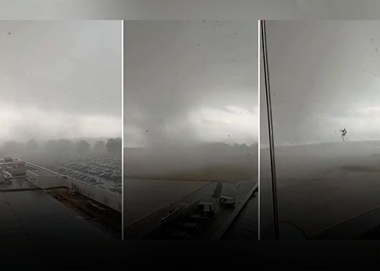 Un tornado golpeó este lunes el aeropuerto de la ciudad francesa de Tours durante una tormenta. Un empleado del aeropuerto logró grabar el momento en que se formó el fenómeno meteorológico. No se han reportado daños significativos.