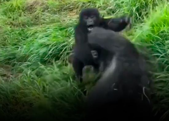 Un video de dos gorilas y su graciosa interacción se ha hecho viral en redes sociales. En las imágenes se puede ver cómo el macho sostiene el cabello de una mujer, mientras ella intenta que lo suelte. A los pocos segundos, una gorila hace una épica entrada y, solo con su presencia, logra que el macho detenga su 'travesura'. Aunque el gorila parece un poco apenado, la hembra decide darle una lección y lo hala, haciendo que ambos caigan y rueden por el suelo.