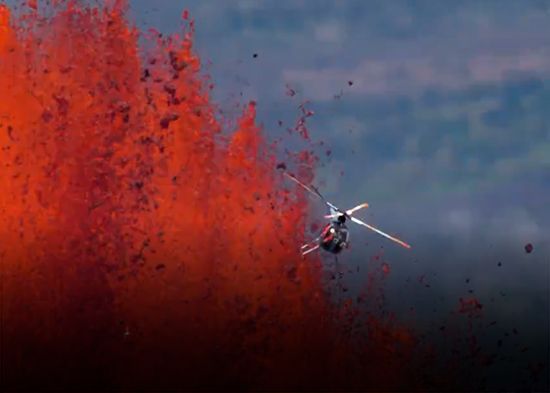 Un impresionante video que circula en redes sociales muestra a un helicóptero en pleno vuelo durante la erupción el jueves del volcán Kilauea de Hawái, considerado uno de los más activos del mundo. En las imágenes parece que la aeronave, con vulcanólogos del Servicio Geológico de EE.UU., estuviese en el centro de la majestuosa fuente de lava. Sin embargo, es apenas una ilusión de perspectiva y se ve más cerca de lo que está en realidad. De cualquier modo, la escena es simplemente alucinante.
