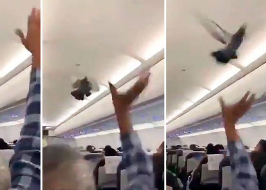 Un video que se ha hecho viral en las redes sociales muestra a una de las aves volando por el pasillo del avión mientras pasajeros y miembros de la tripulación intentan atraparla.
