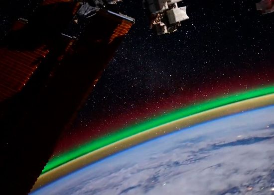 El halo naranja sobre la Tierra que se ve en las imágenes es el propio resplandor del planeta, que es prácticamente imperceptible desde su superficie, comenta el cosmonauta. Este fenómeno es el resultado de procesos en la atmósfera superior. La específica luz verde es el óvalo de las auroras boreales y se divisa a medida que la estación espacial se acerca a las latitudes polares.