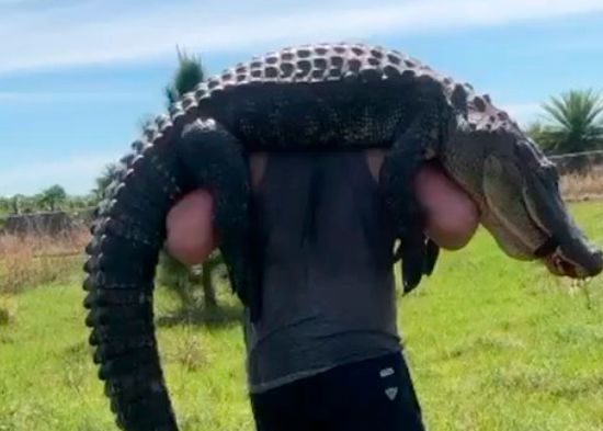 Un "regalo de bodas" poco común: un jugador de fútbol americano mata a un caimán gigante y lo carga en sus hombros