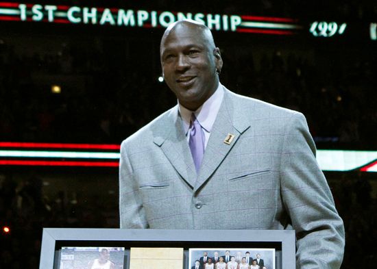 El año pasado un par de zapatillas firmadas por Jordan, diseñadas especialmente para él y que las usó durante su primera temporada en la NBA fueron vendidas por la suma récord de 560.000 dólares en la casa de subastas Sotheby's.
