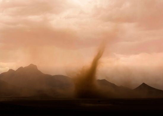 Un gran remolino de polvo arremetió el pasado viernes sobre el desierto de Black Rock, en el estado de Nevada, EE.UU., peligrosamente cerca de los campamentos de autocaravanas del festival anual Burning Man ('Hombre en Llamas'). Un video grabado por Robert June muestra a su compañero cuando se acerca al remolino. June afirmó que también caminó a través de la tormenta y que "apenas podía mantenerse en pie". Recibir todo ese el polvo en la cara a gran velocidad, dijo, "no es divertido".