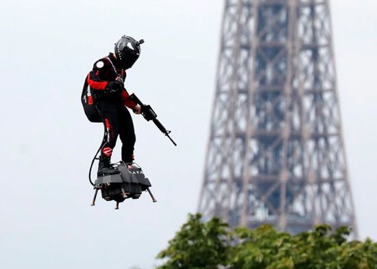 La ministra de las Fuerzas Armadas, Florence Parly, dijo a la radio France Inter que el "Flyboard" "puede ser probado para diferentes tipos de usos, por ejemplo como plataforma logística voladora o, incluso, como plataforma de asalto".