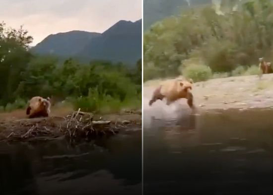 Un video publicado recientemente en redes muestra el momento en el que unas personas en un bote son perseguidas velozmente por una osa que se encontraba con sus dos crías. El incidente presuntamente ocurrió en la península rusa de Kamchatka. Los viajantes afortunadamente lograron escapar del depredador.