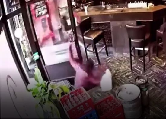 VIDEO: Entra en una cafetería y cae en una trampilla abierta