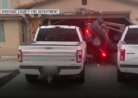Un automóvil que iba a alta velocidad en una calle residencial en California, perdió el control, acabó por los aires y se estrelló contra el garaje de una casa.