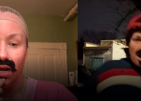 Además, su pareja le ayudó a conseguir una peluca, un bigote falso y unas mangas con tatuajes para que su disfraz fuera más convincente frente a las personas que se encontraría en la calle.