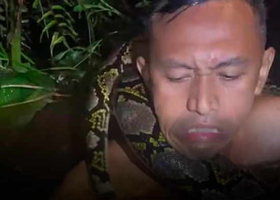 VIDEO IMPACTANTE muestra cómo una pitón gigante casi mata a un guía en Indonesia